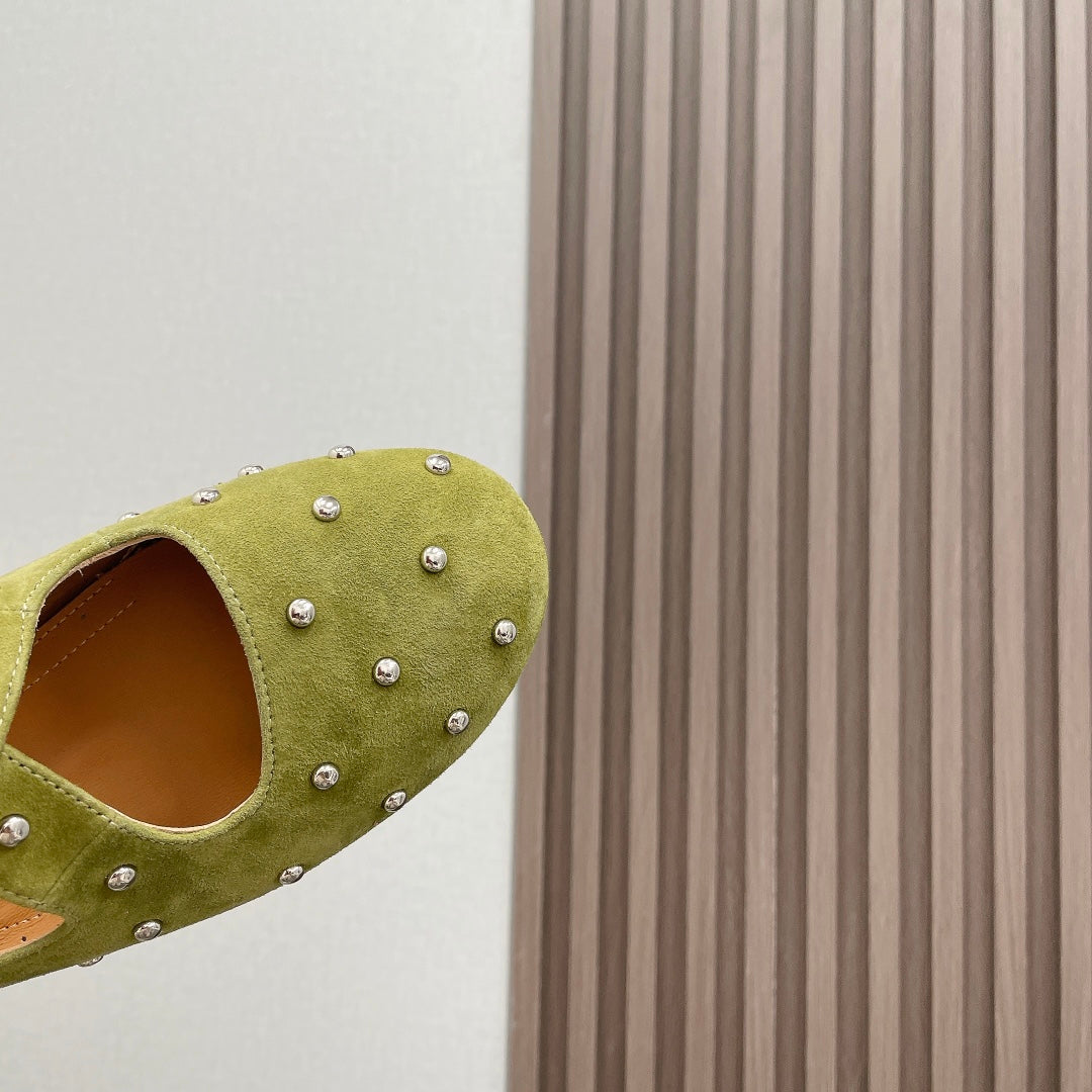 Alaia 2025 Criss Cross With Stud Ballet Flats Avocado Green Suede 293209