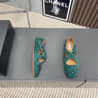 Alaia 2025 Criss Cross With Stud Ballet Flats Emerald Green Suede 293208