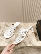 Alaia 2025 Vienne Cutout Kitten-Heel Slide Sandals White Leather 293650