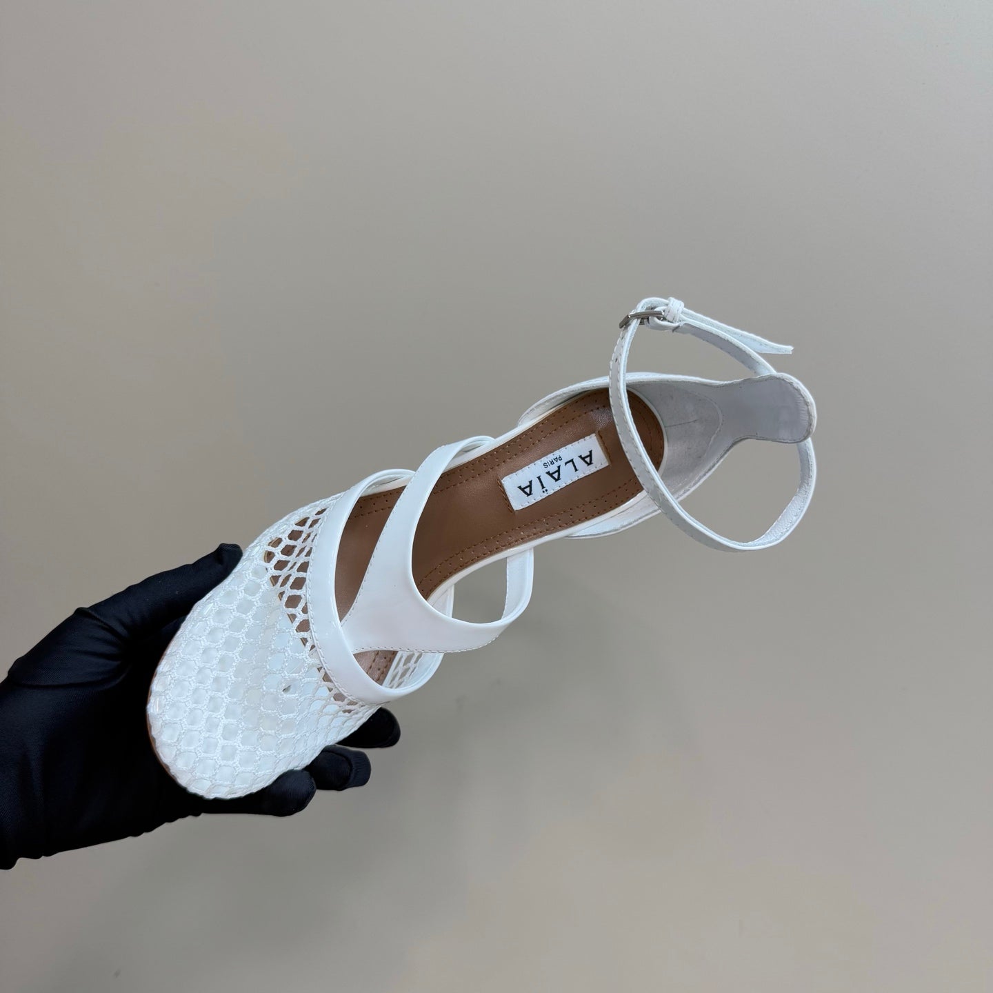 Alaia Fishnet Thong Heels Sandals White Lambskin 299659