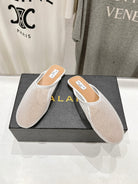 ALAIA FLAT MULES IN WHITE MESH FISHNET