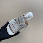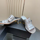 Alaia Vienne Cutout Kitten-Heel Slide Sandals Silver Sheepskin 299664