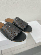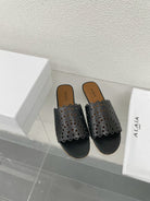 ALAIA VIENNE FLAT MULES IN BLACK LAMBSKIN