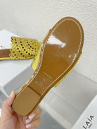 ALAIA VIENNE FLAT MULES IN GOLDEN LAMBSKIN
