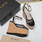 ALAIA WEDGE SANDAL IN BLACK MESH AND BEIGE RUBBER