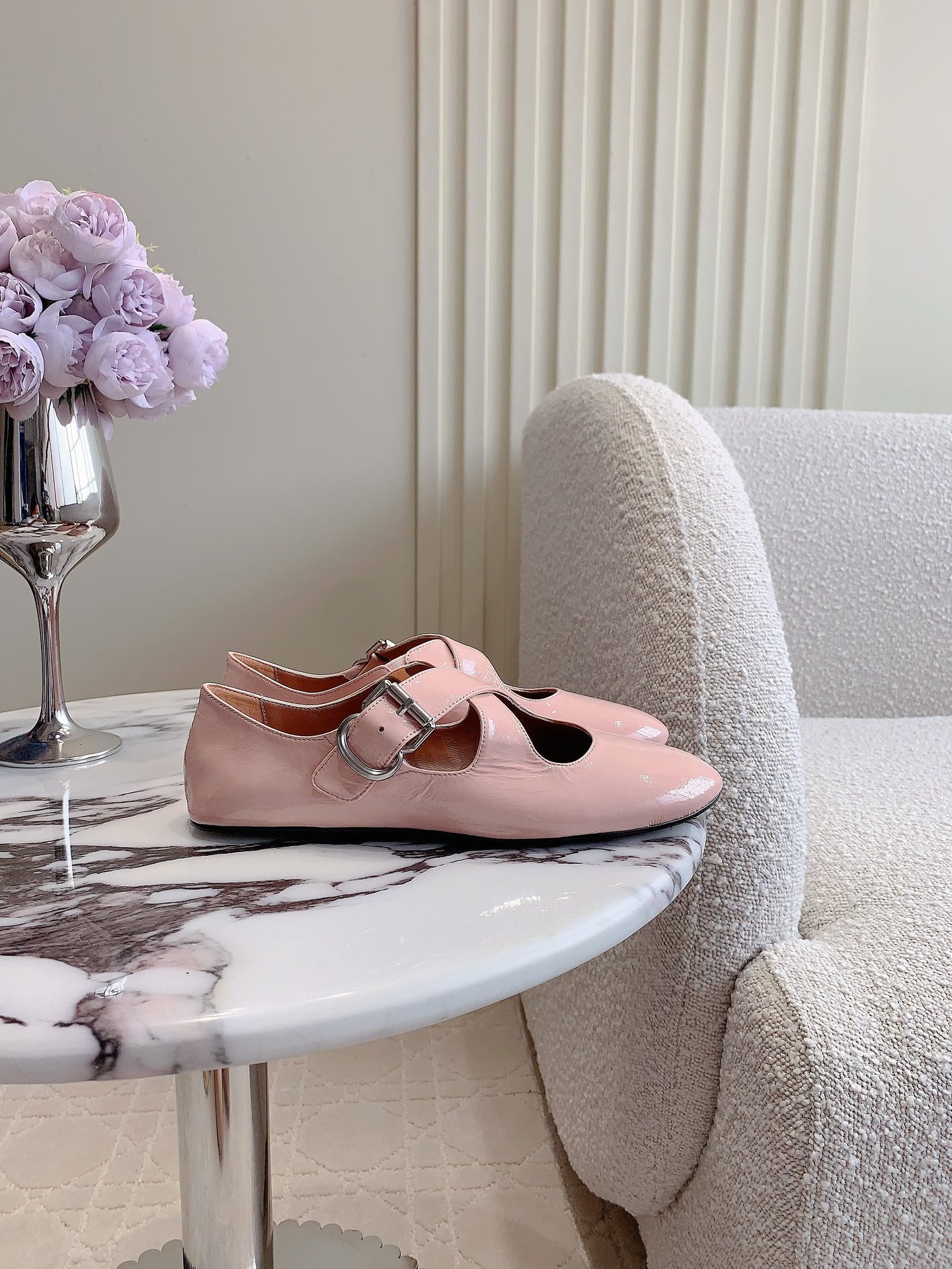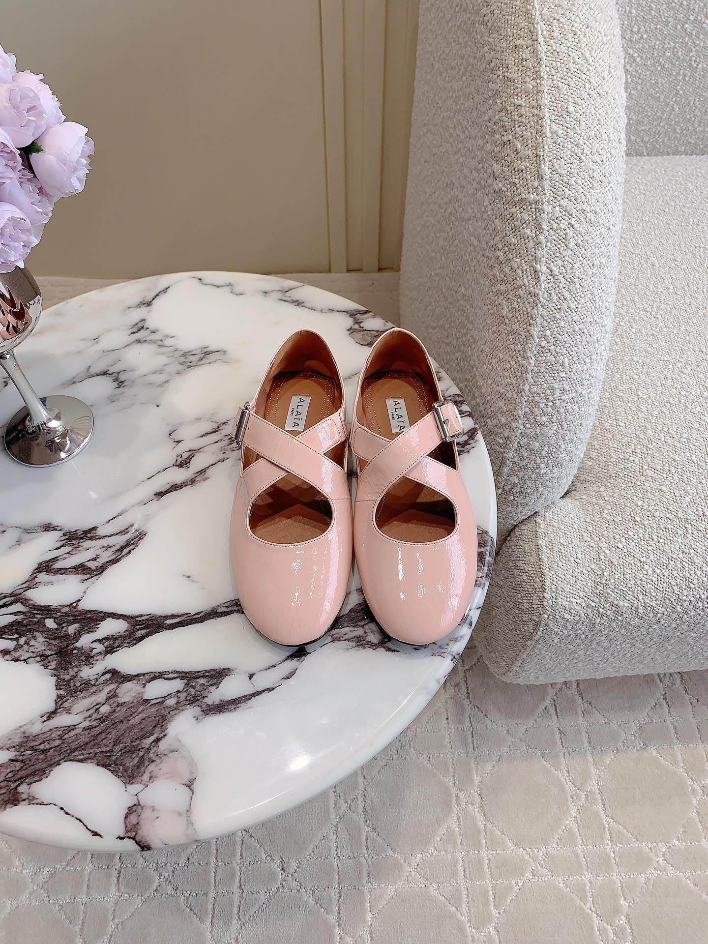 ALAIA BALLET FLATS IN ALMOND BEIGE GLOSSY CALFSKIN WITH SILVER HARDWARE