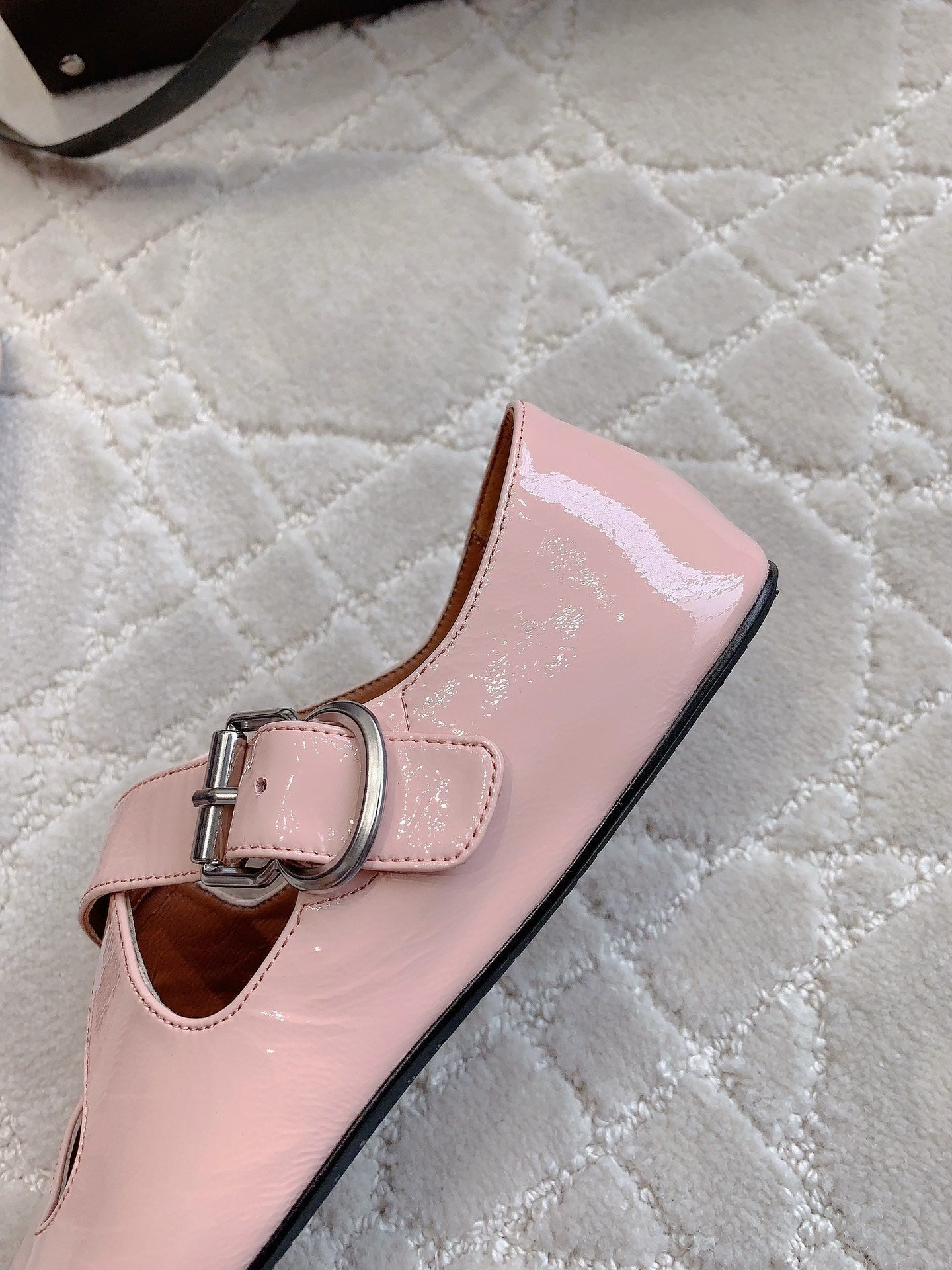 ALAIA FLAT SLINGBACK IN ROSE PINK PATENT CALFSKIN AND FILM
