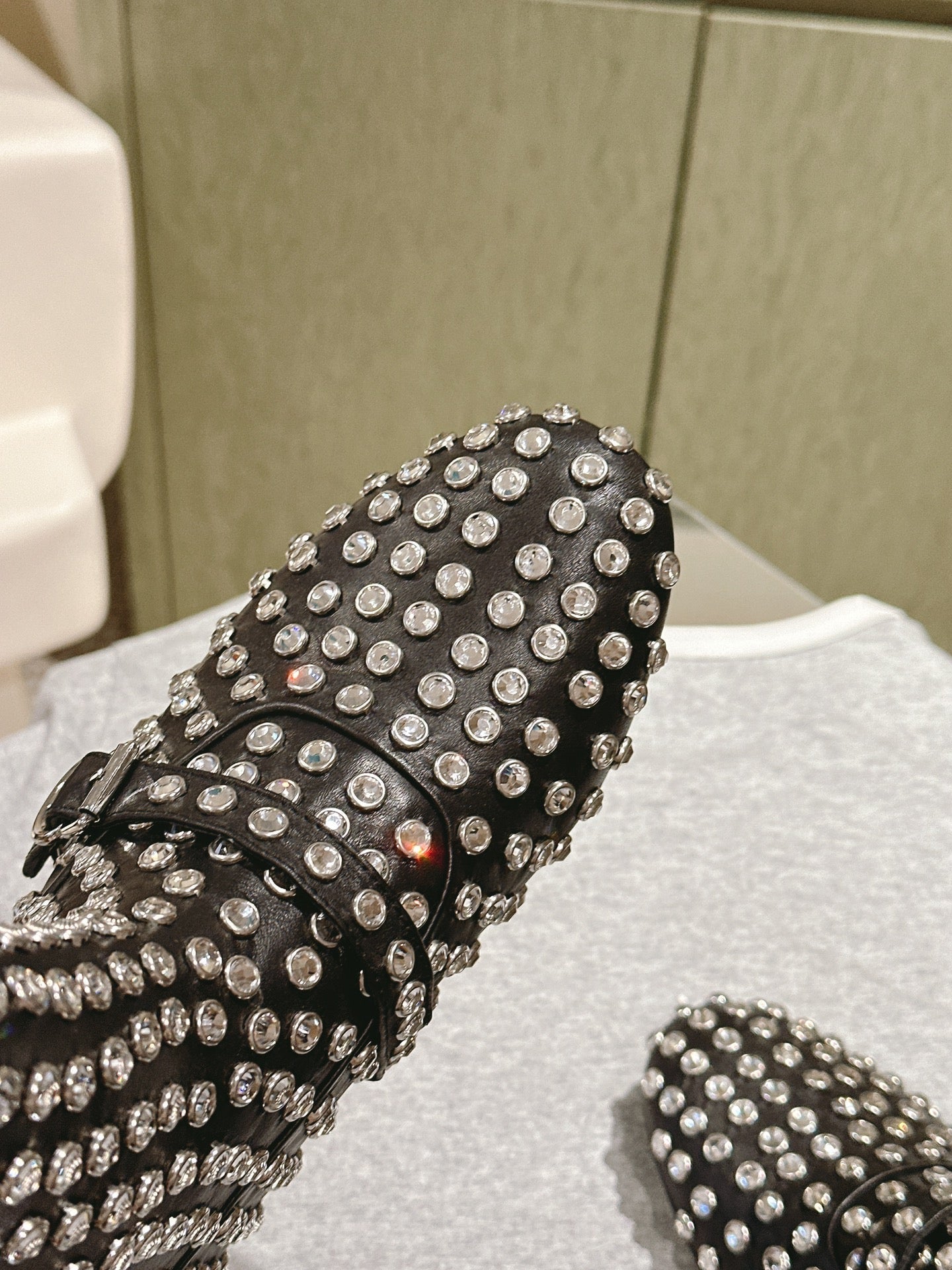 ALAIA MARY JANE SHOES IN BLACK LAMBKIN ATTACH RHINSTONES