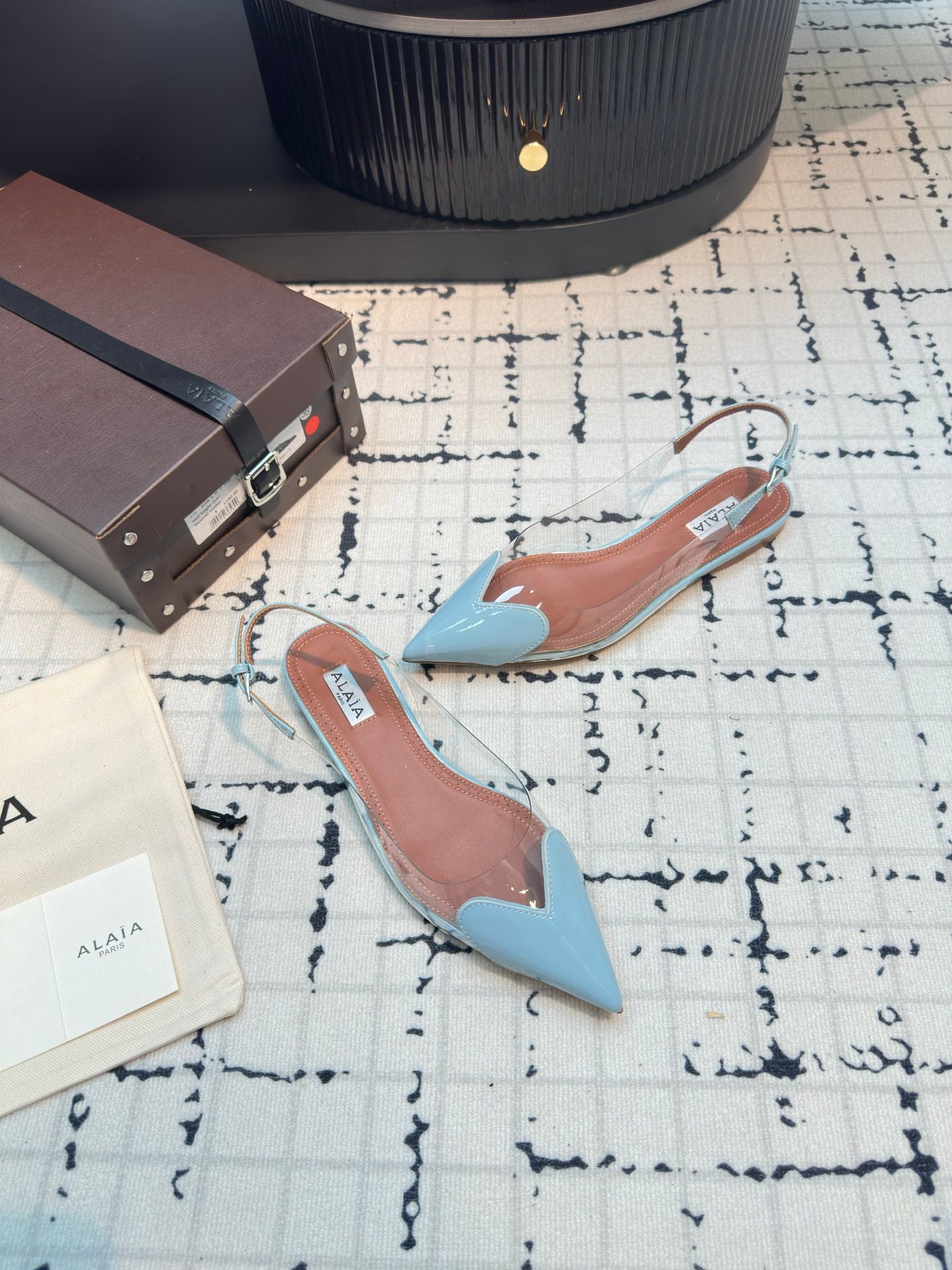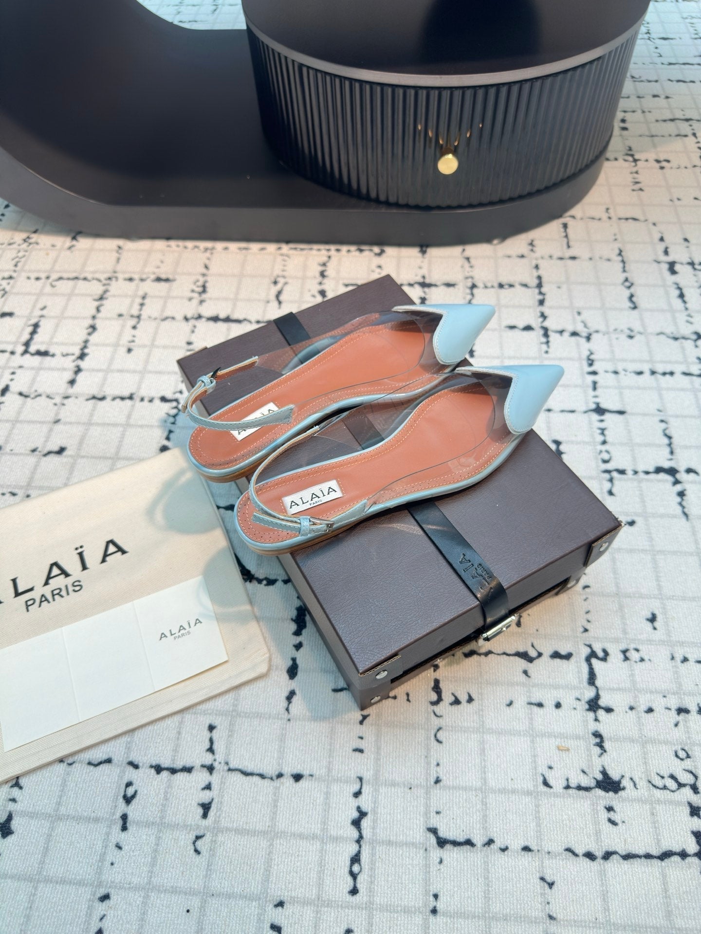 ALAIA FLAT SLINGBACK IN LIGHT BLUE PATENT CALFSKIN AND FILM