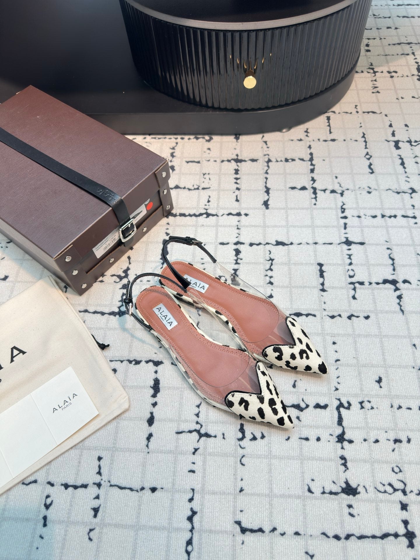 ALAIA FLAT MULE IN LEOPARD LAMBSKIN