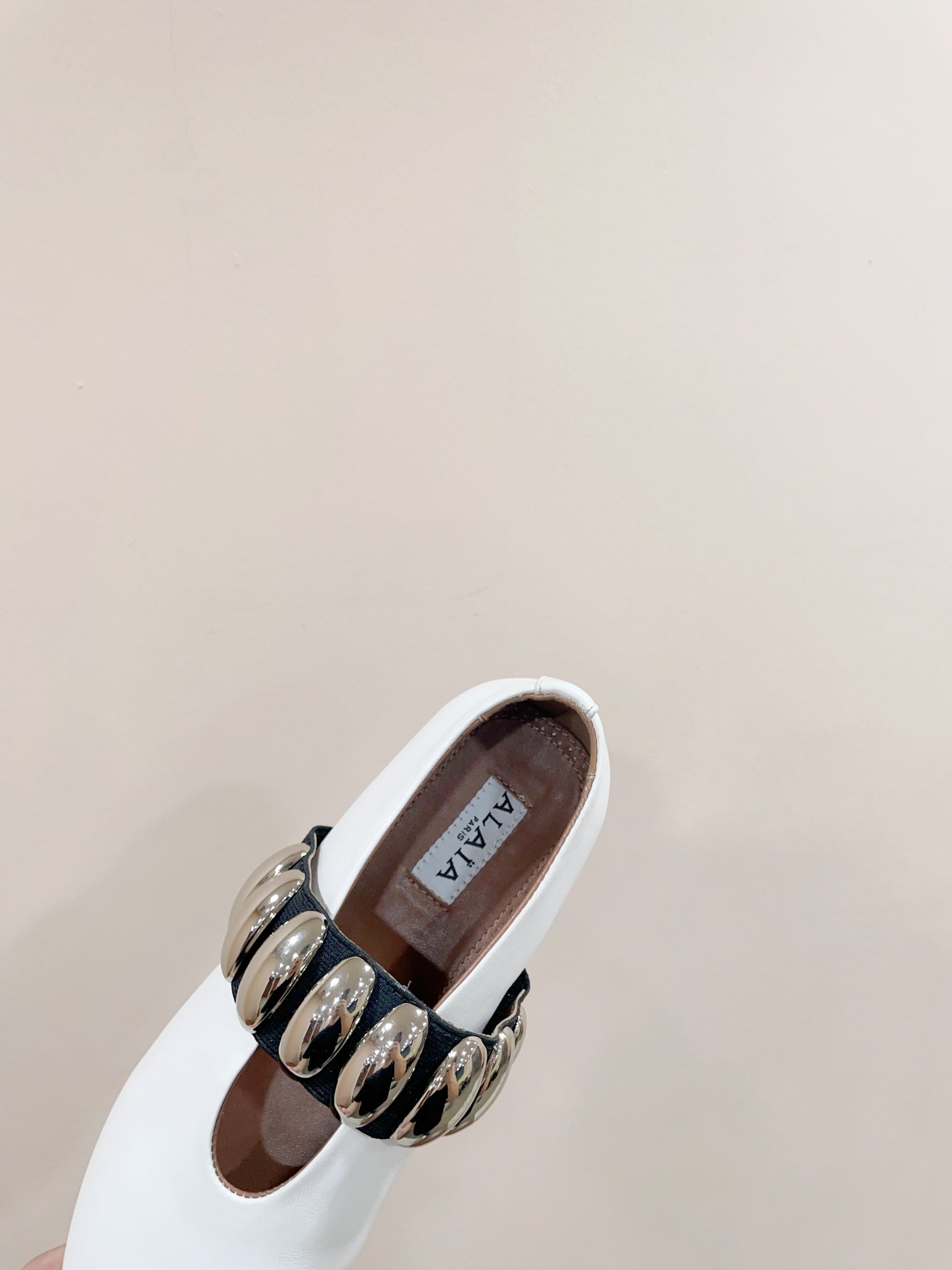 ALAIA FLAT MULE IN WHITE LAMBSKIN WITH GOLD HARDWARE