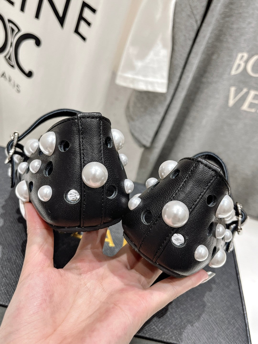 ALAIA PEARL MARY JANE SHOES BLACK MIX WHITE LAMBSKIN