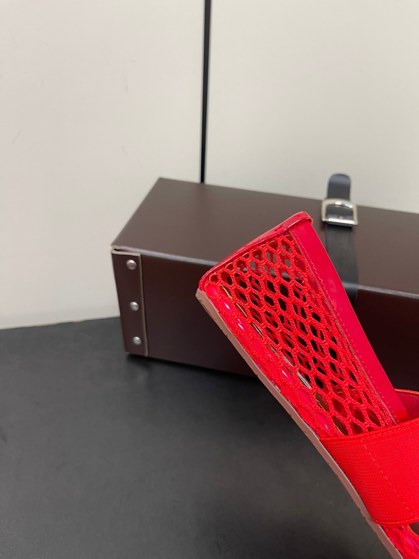 ALAIA FLAT MULES IN CHERRY RED MESH FISHNET