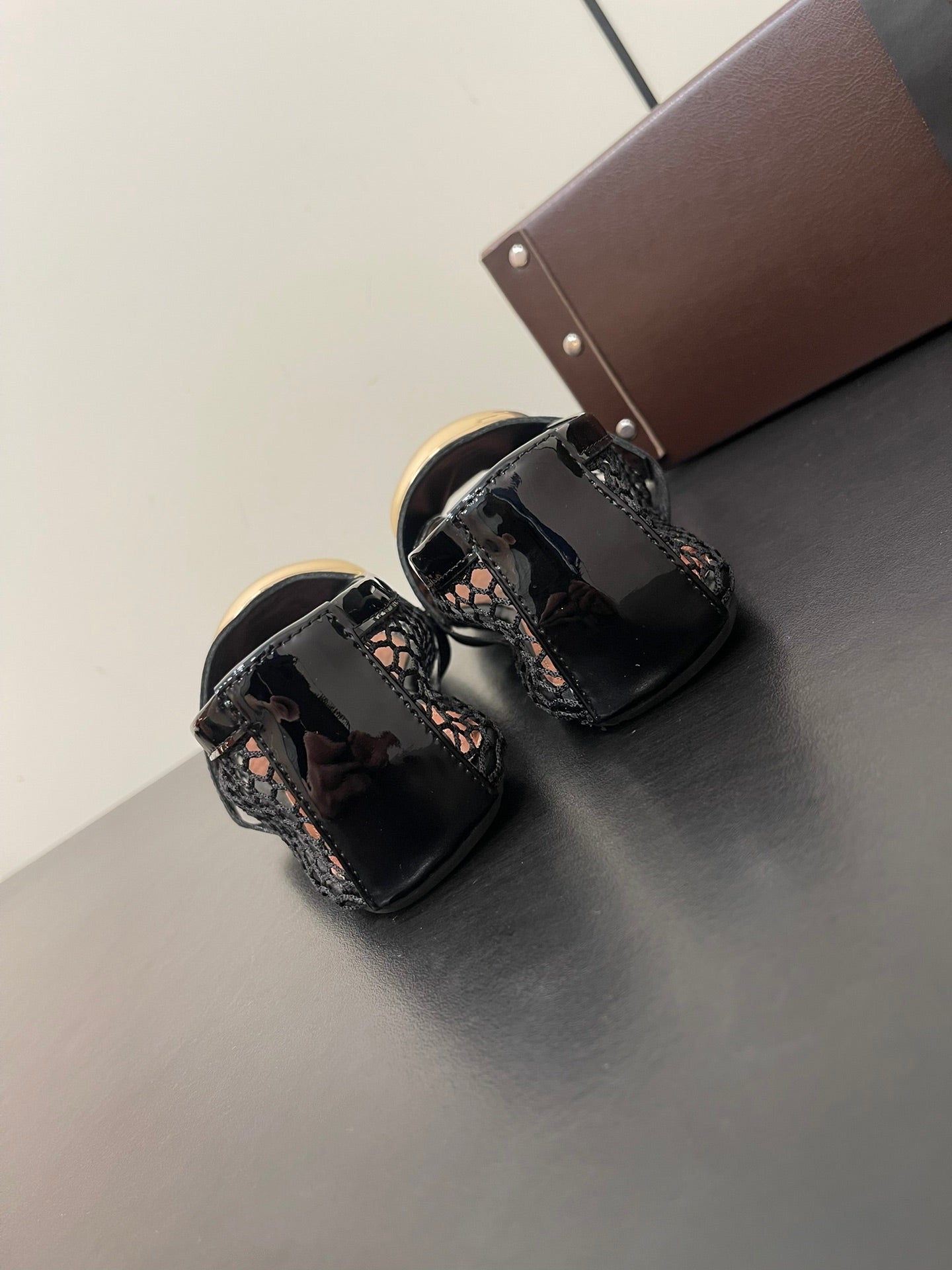 ALAIA LE COEUR FLAT SLINGBACKS IN BLACK PATENT LAMBSKIN