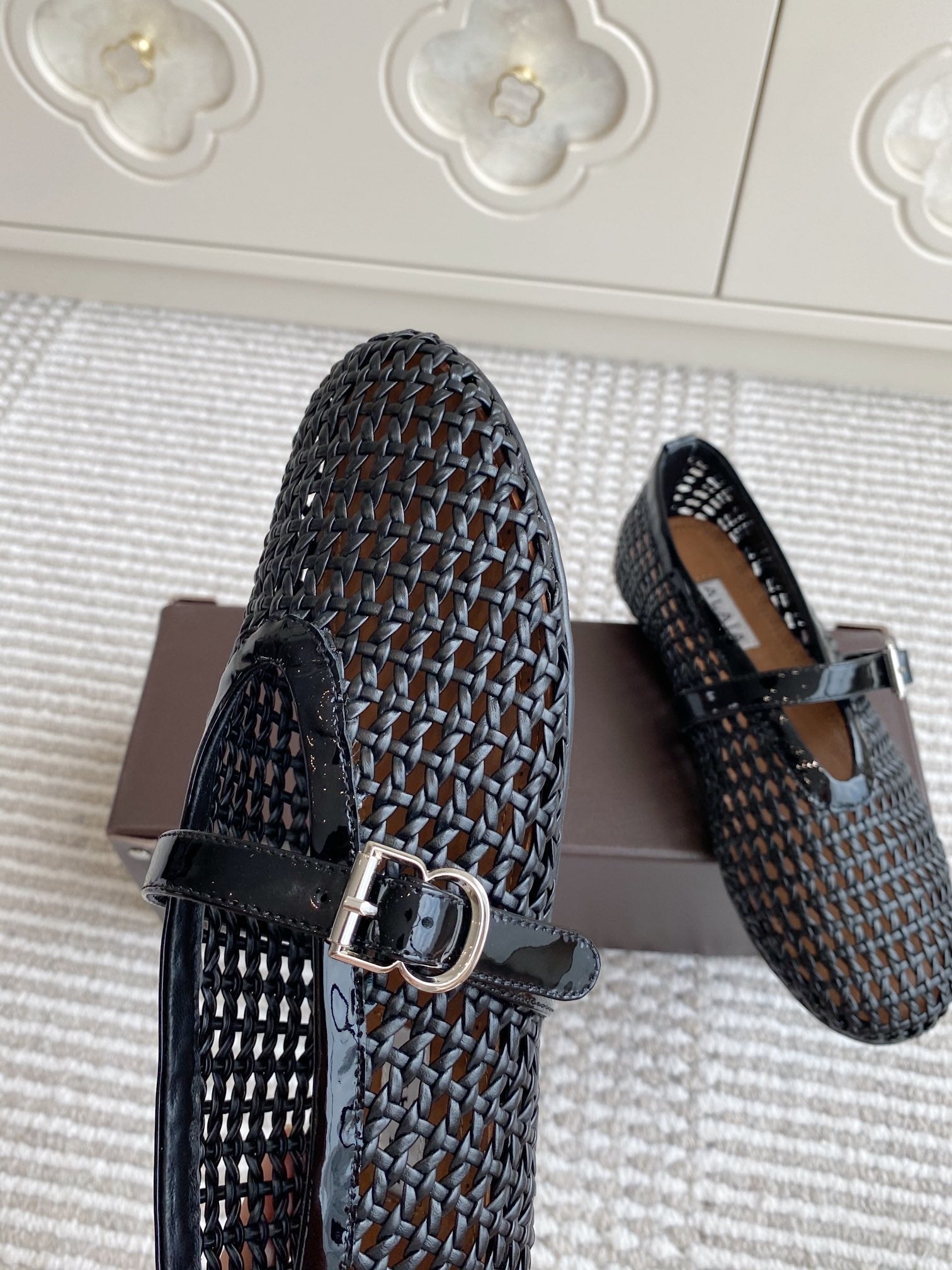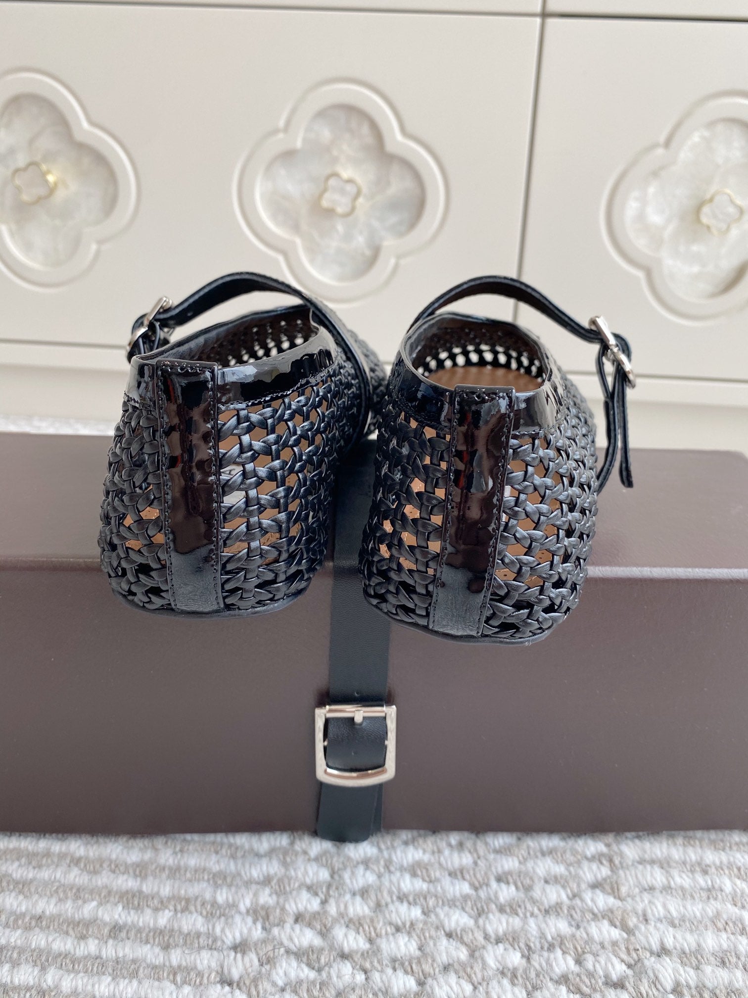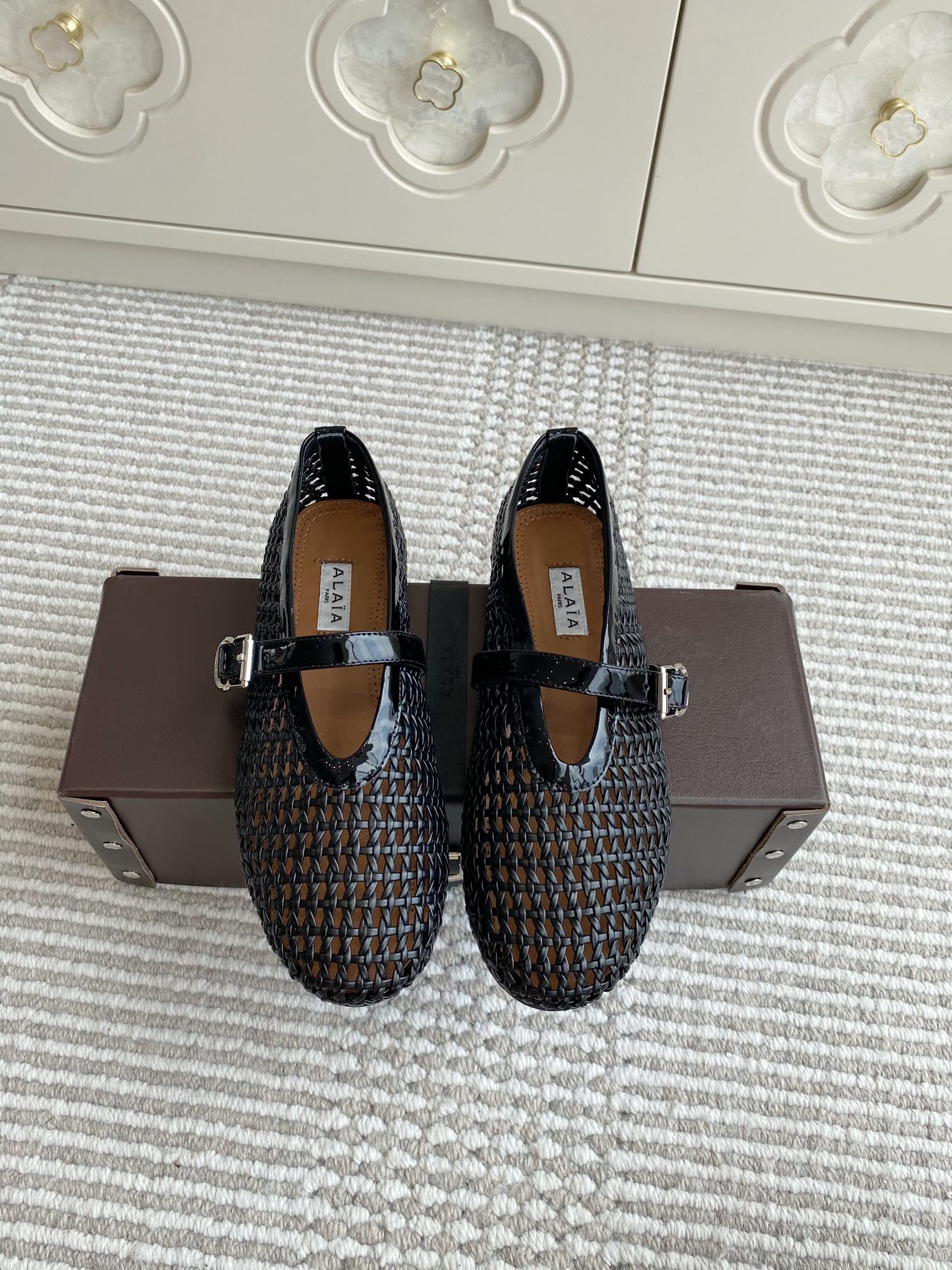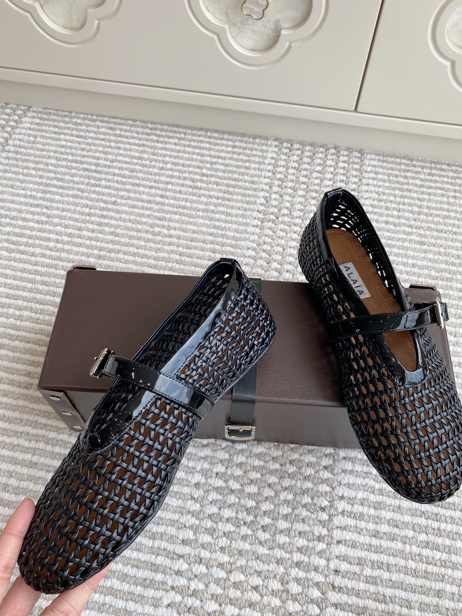 ALAIA MARY JANE FLATS black woven calfskin pattent
