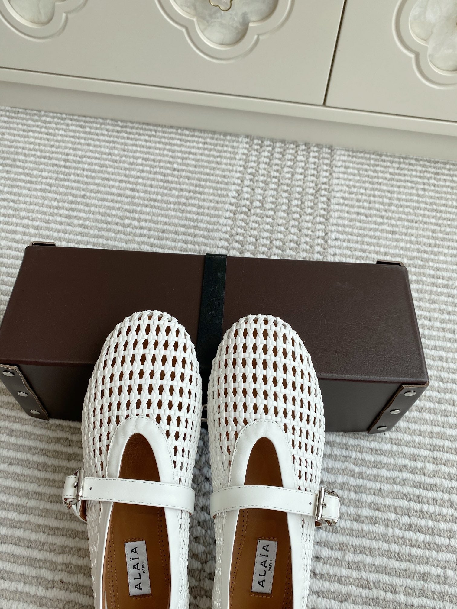 ALAIA MARY JANE FLATS white mix beige woven calfskin pattent