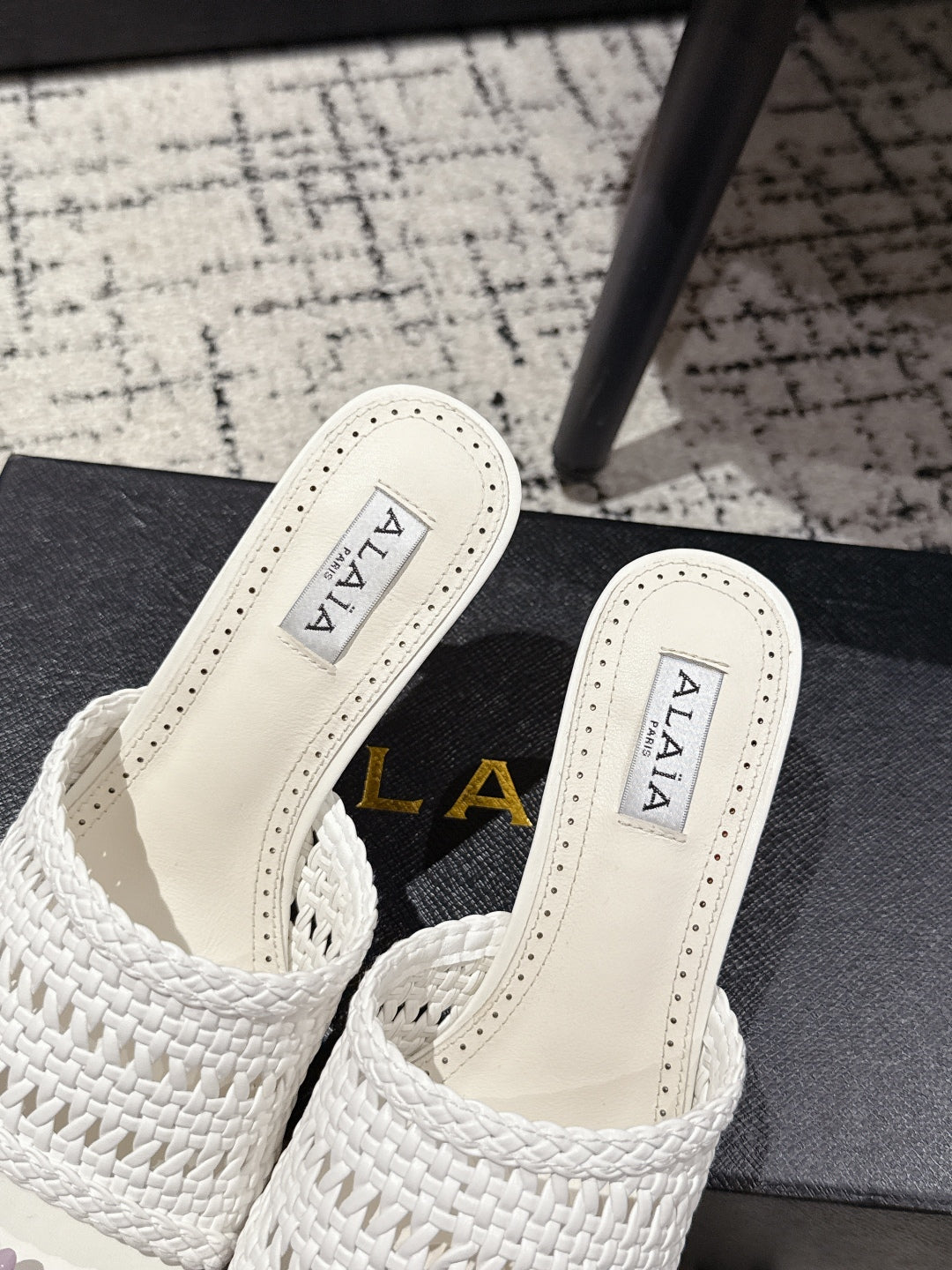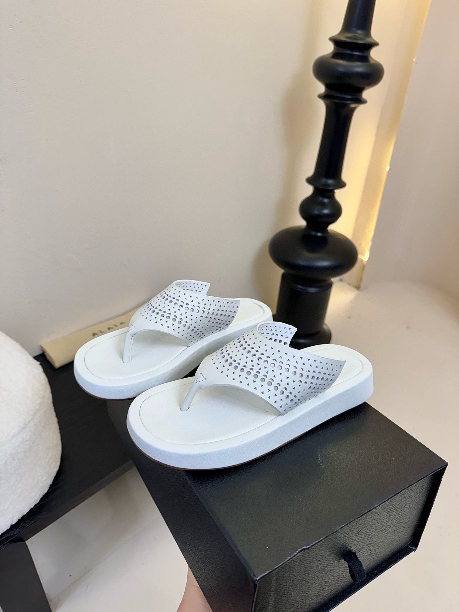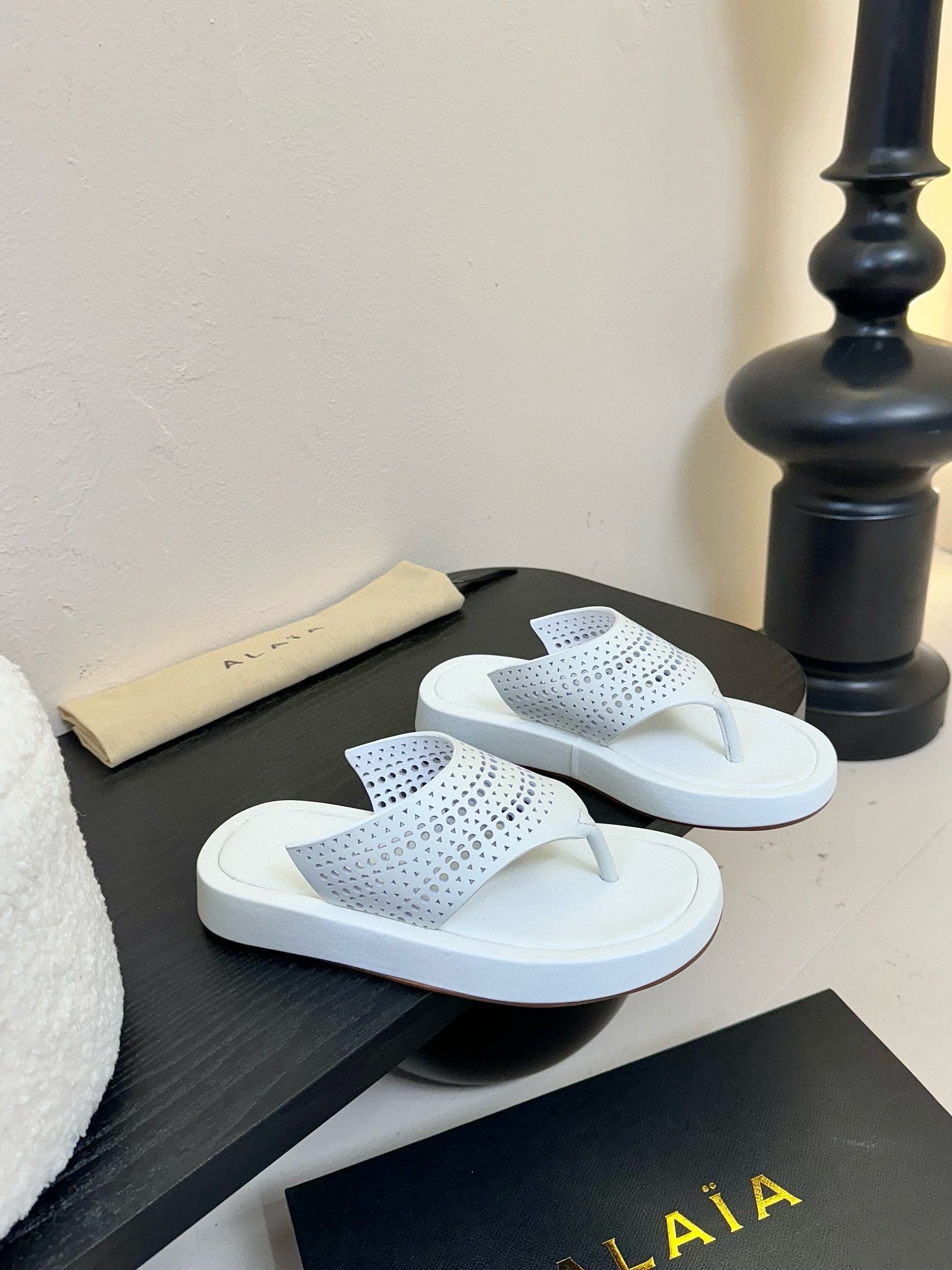 Alaia 25 Thong Sandals White Fishnet Sheepskin 315964