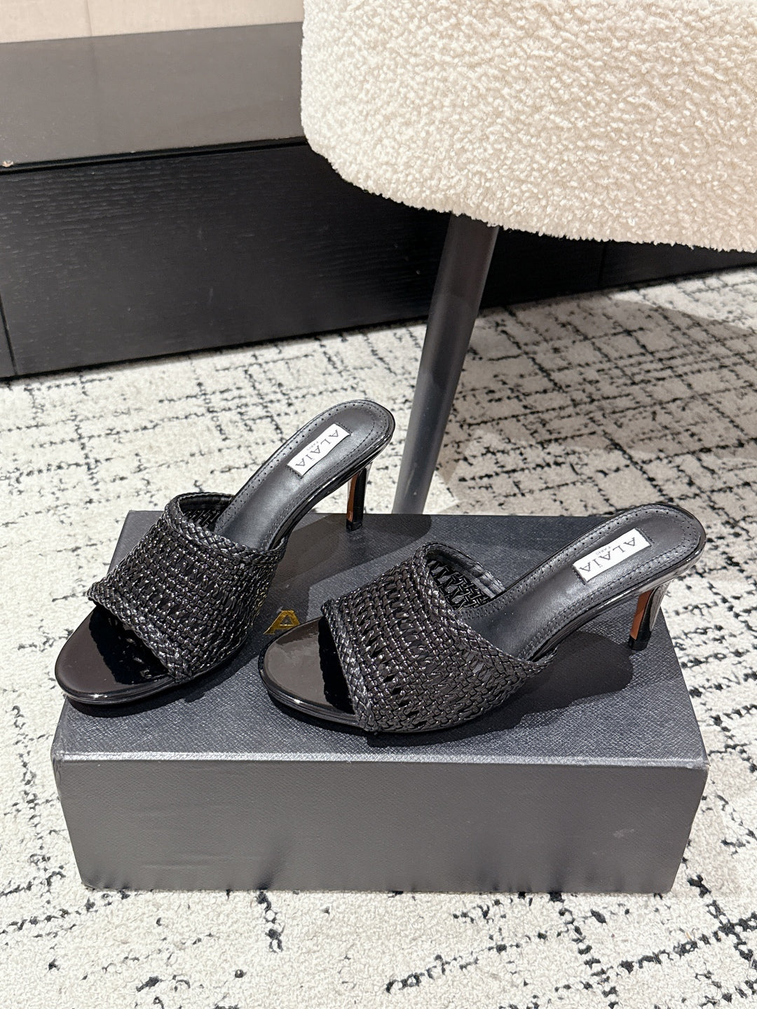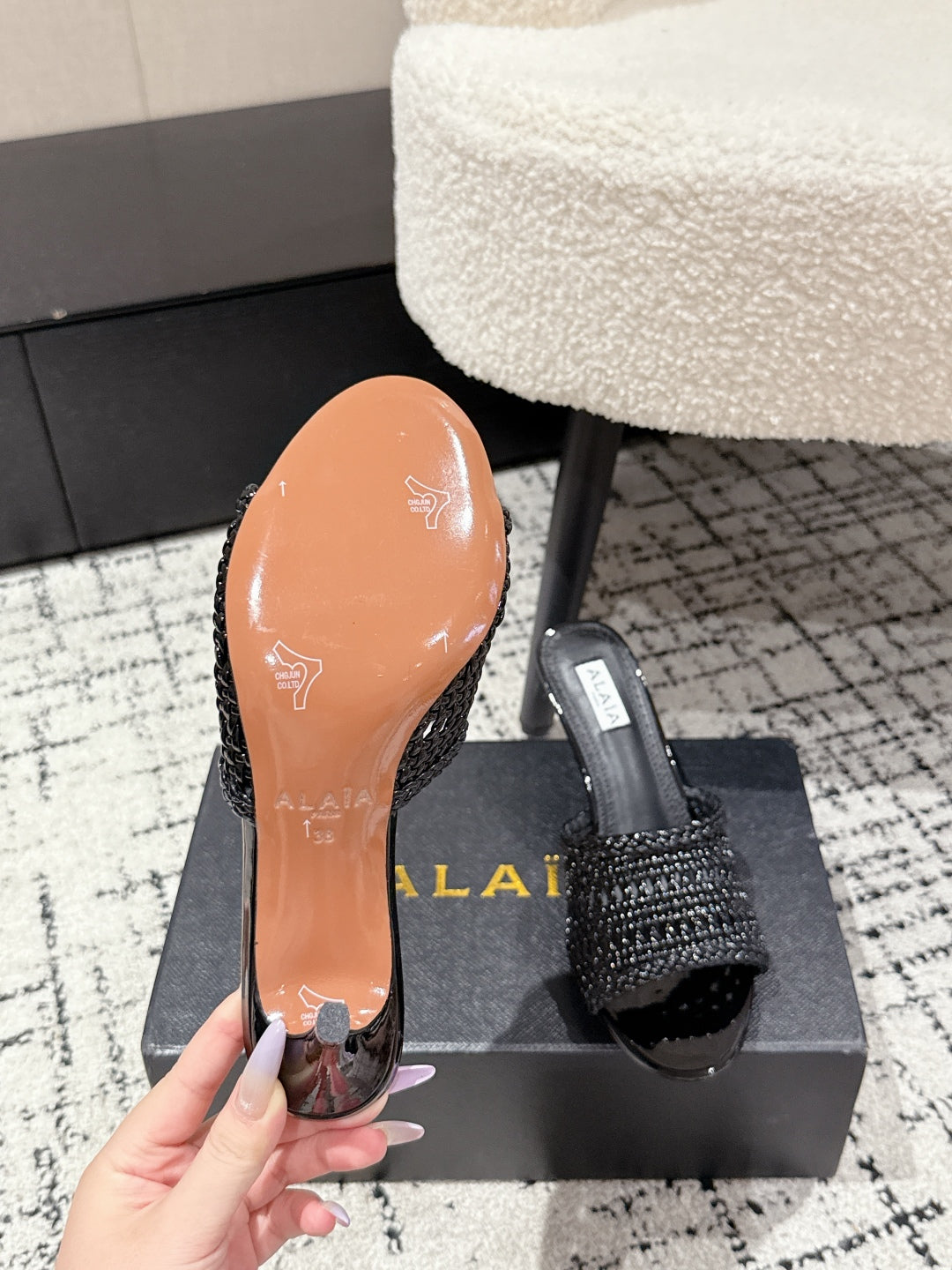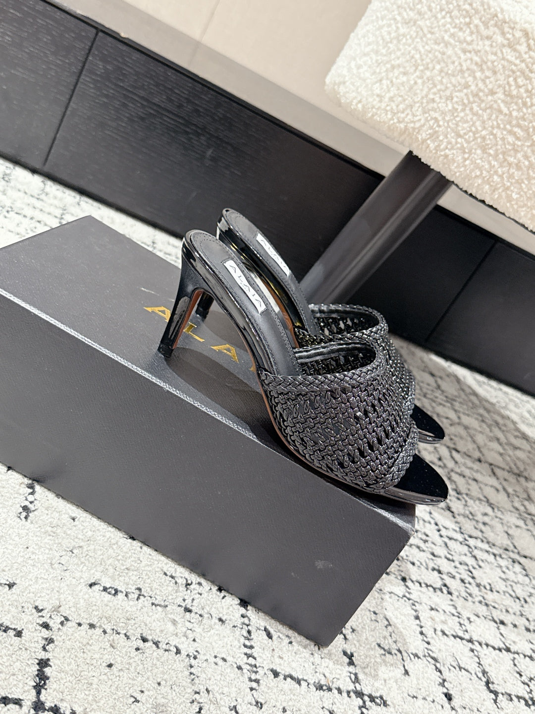 Alaia 25 Flower Slippers Black Sheepskin 293157