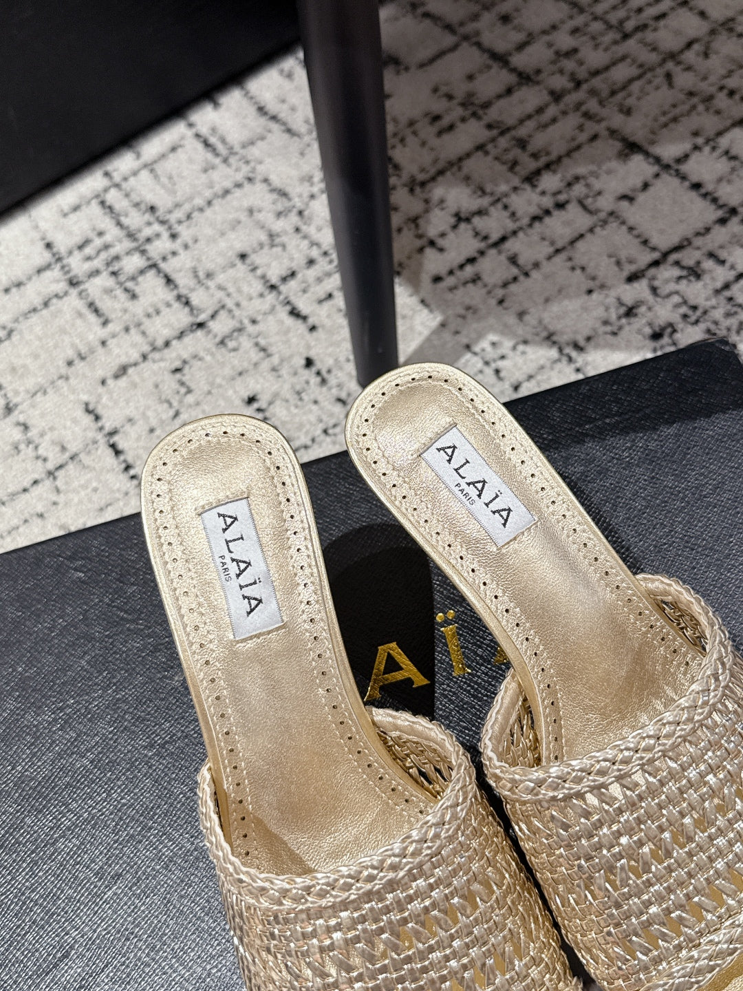 Alaia 25 Flower Slippers Gold Sheepskin 293162