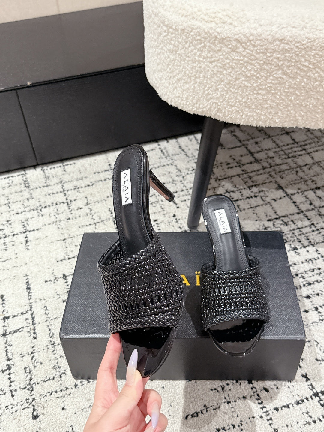 Alaia 25 Flower Slippers Glossy Black Sheepskin 293160