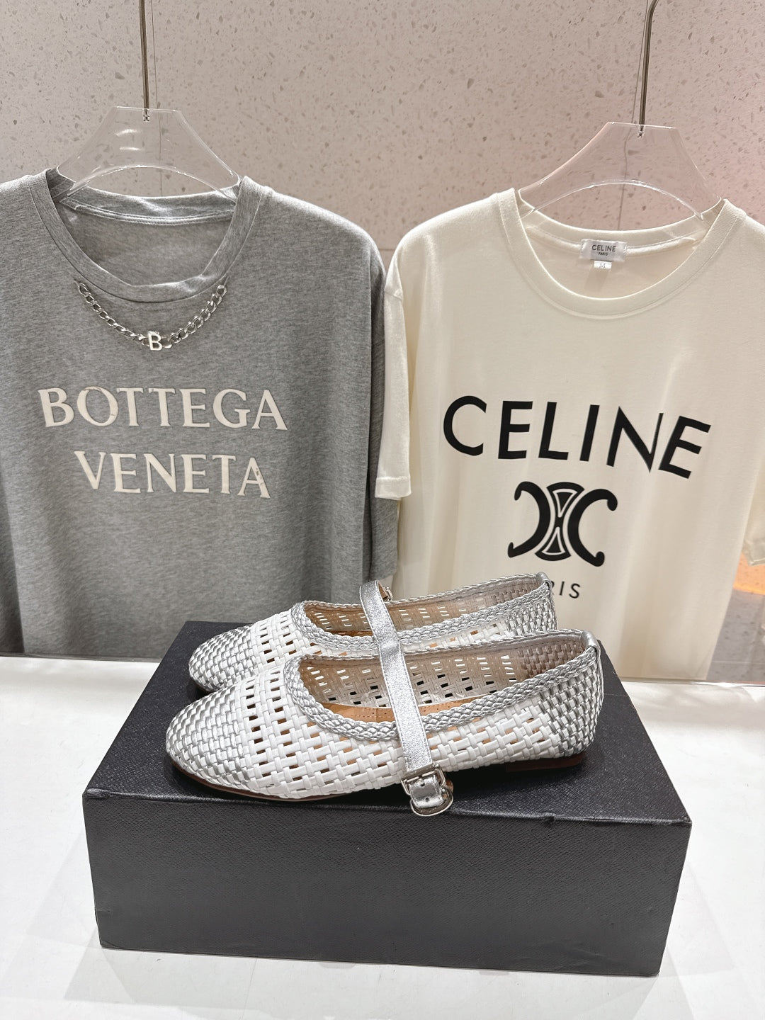 ALAIA MARY JANE FLATS white mix metallic champagne gold woven calfskin pattent