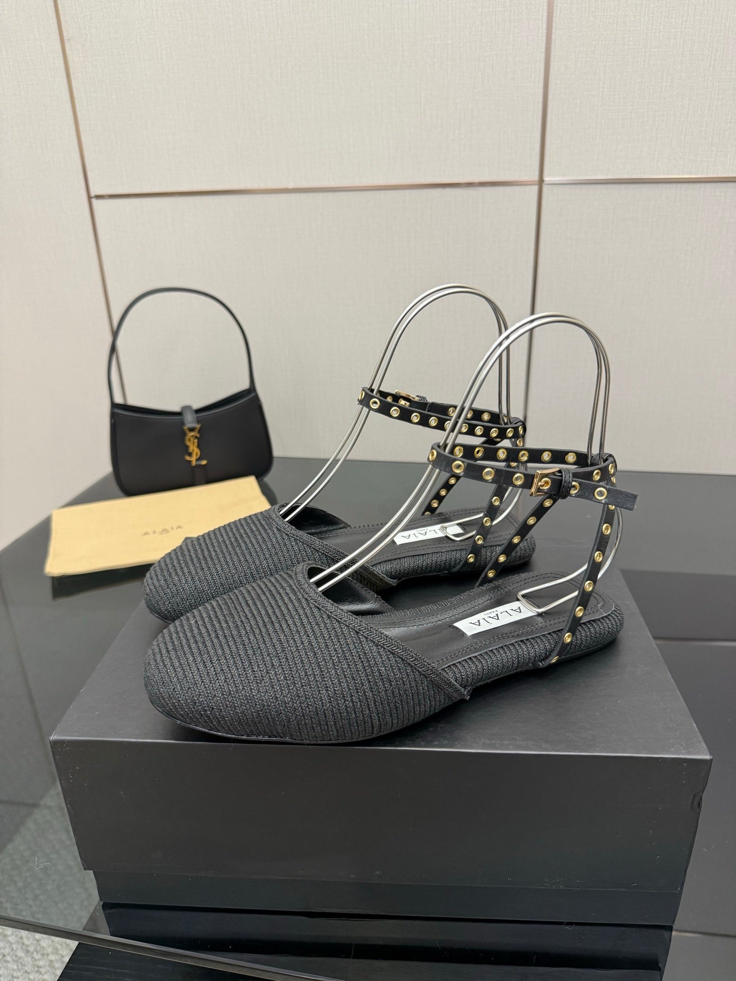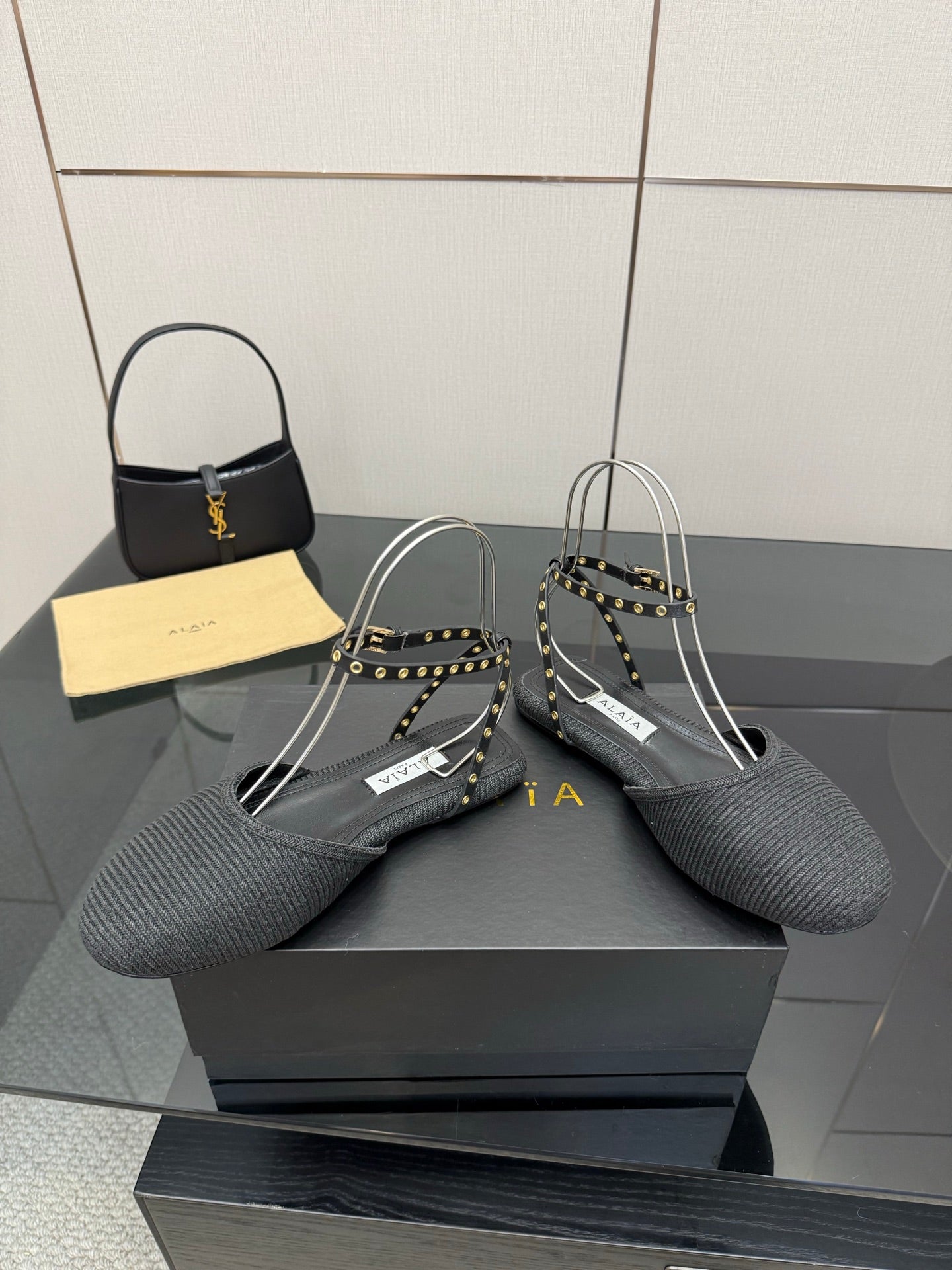 Alaia 25 Biker Ballet Flats Black Calfskin 291055