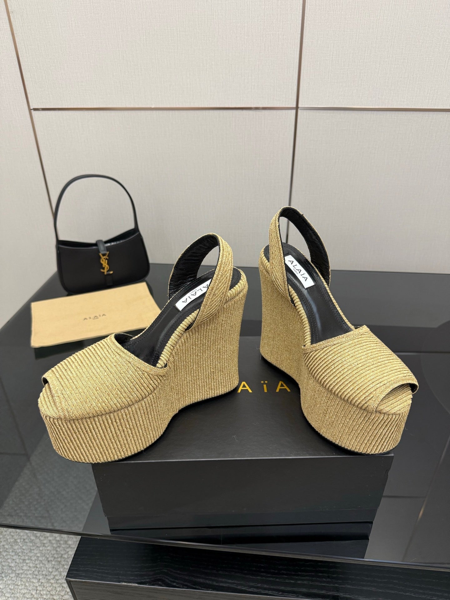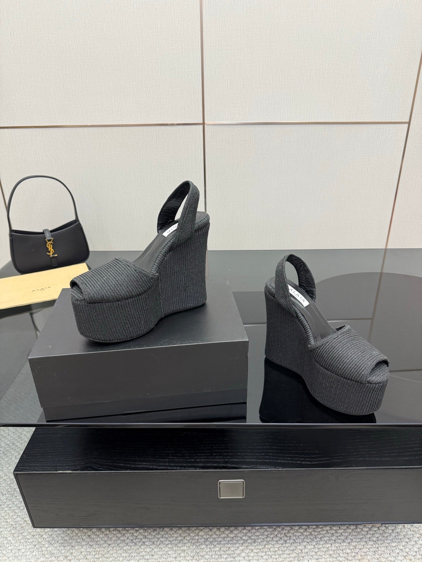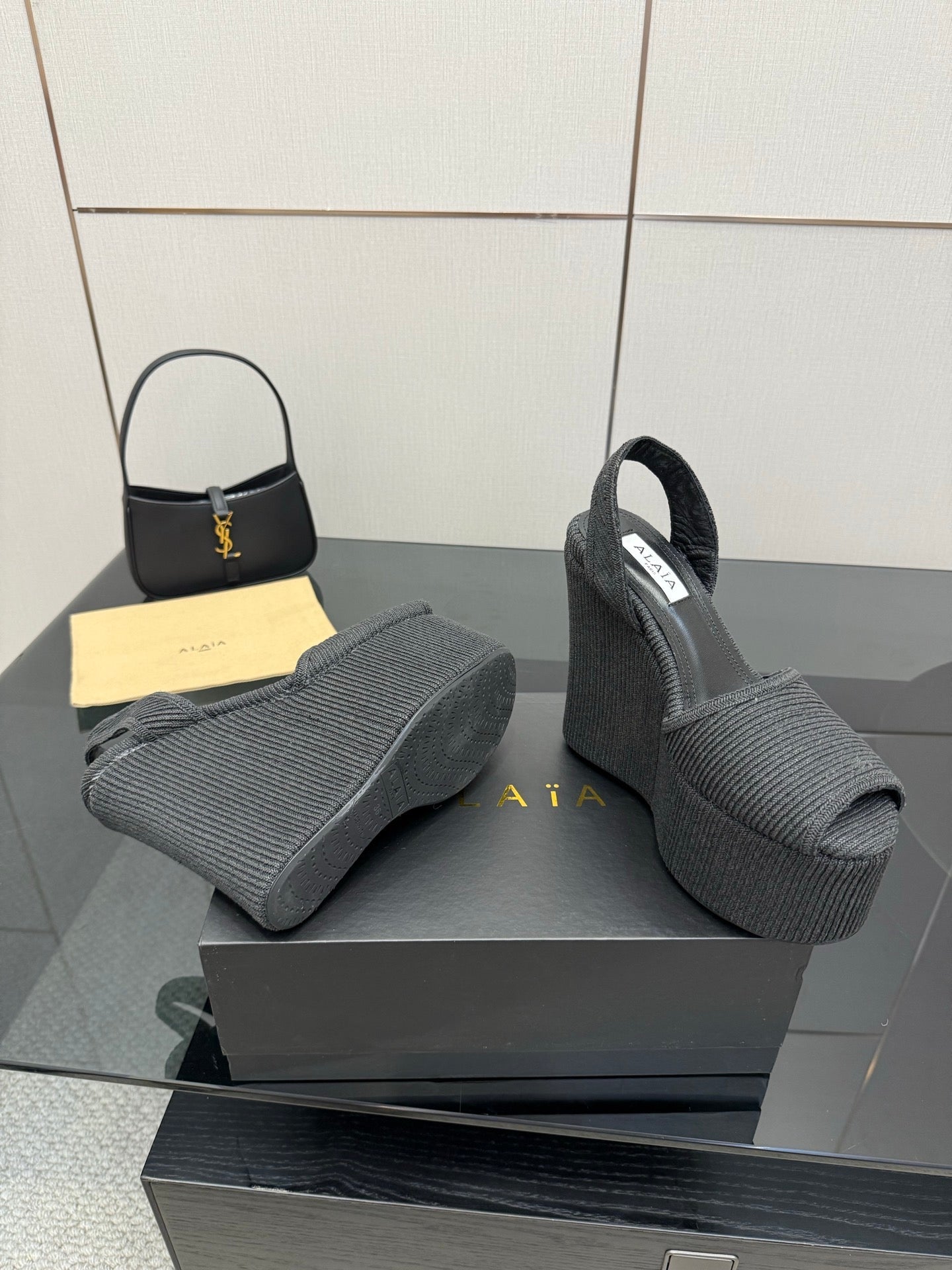 Alaïa Mid-Heel Plastron Platform Sandals Buffed Nappa Leather