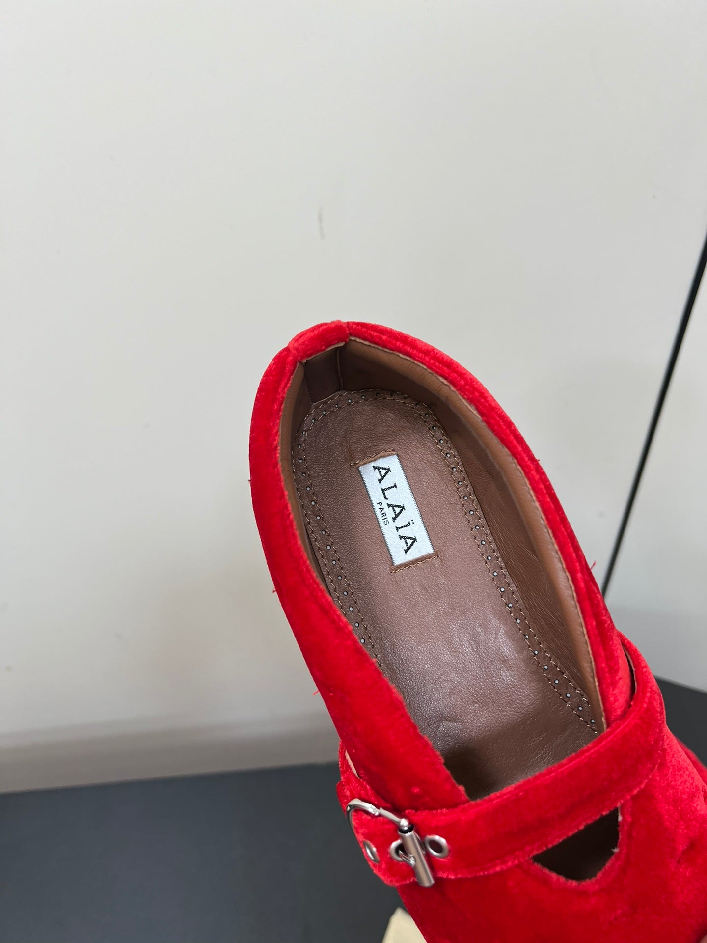 Alaila Mary Jane In Red Mesh Fabric 103018