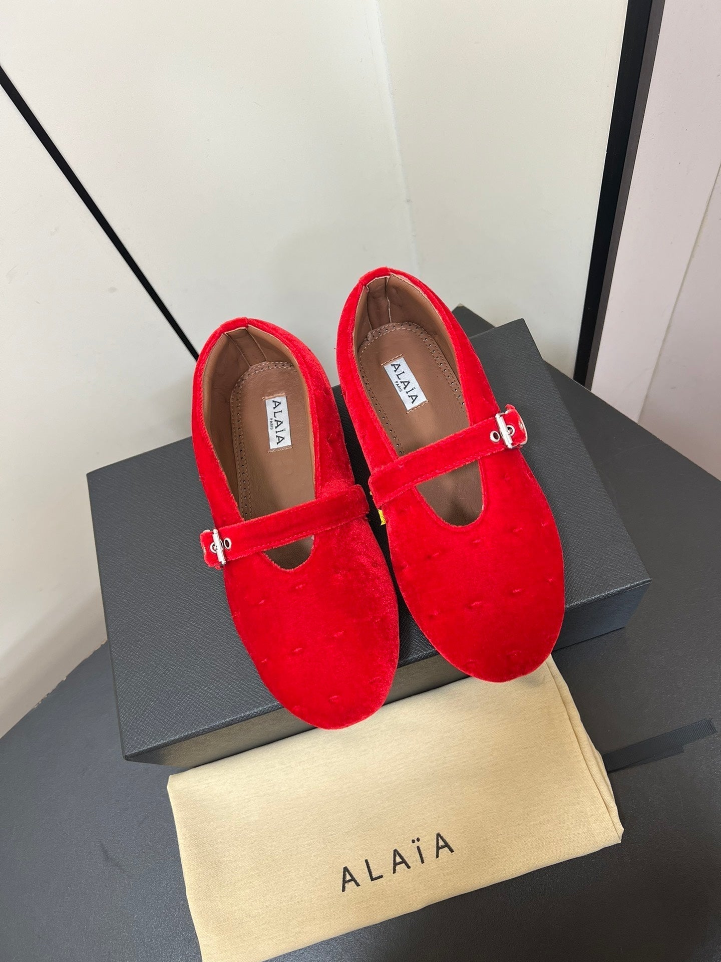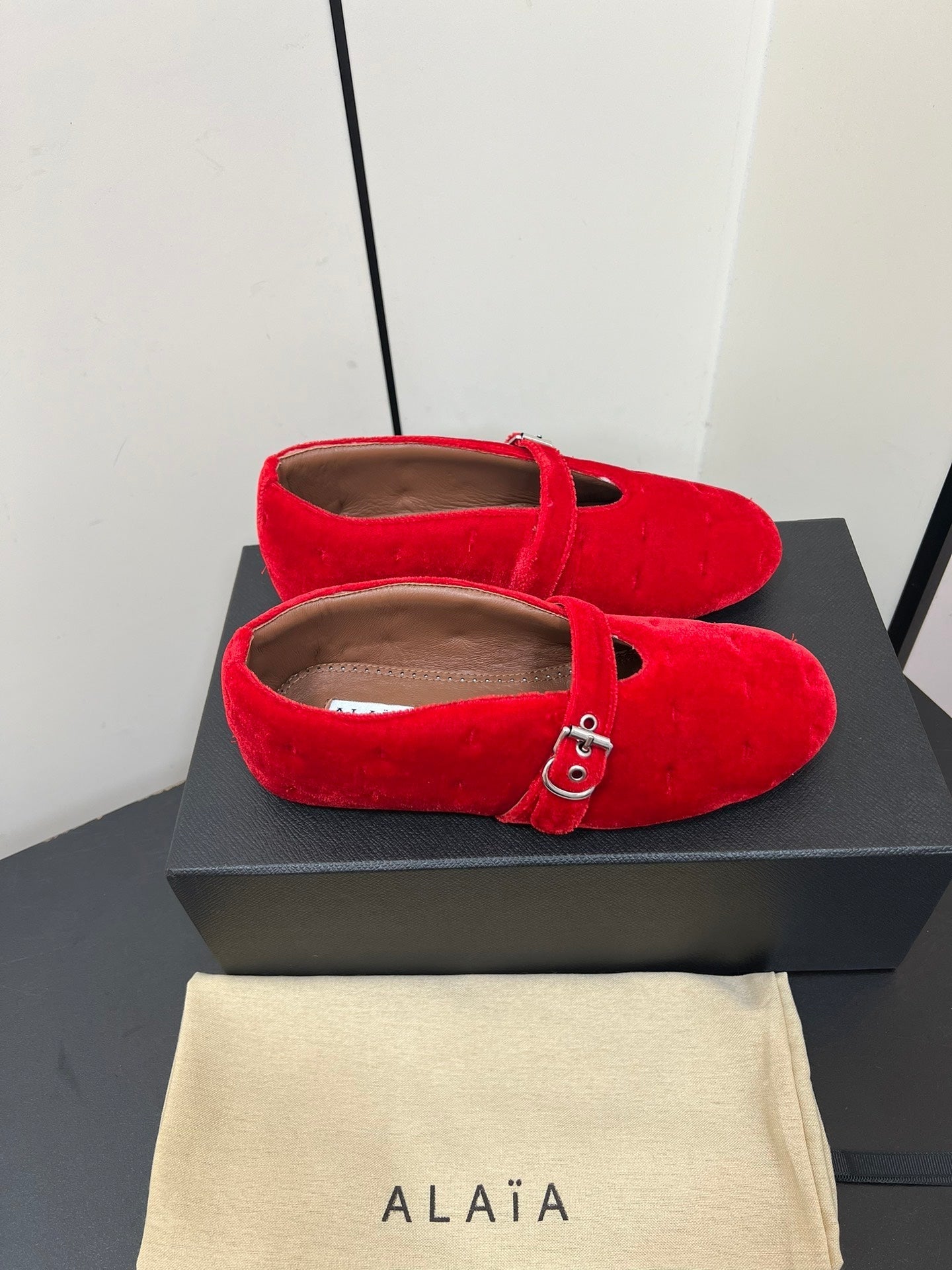 Alaila Criss Cross Ballet Flats In Red Velvet 996049