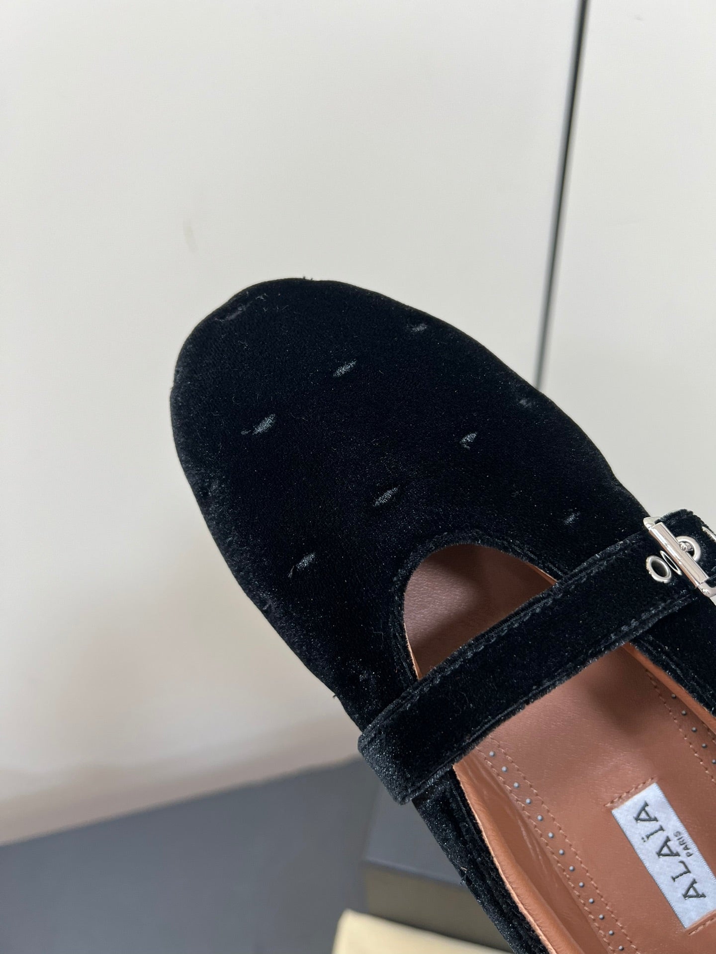 Alaila Criss Cross Ballet Flats In Black Velvet 996039