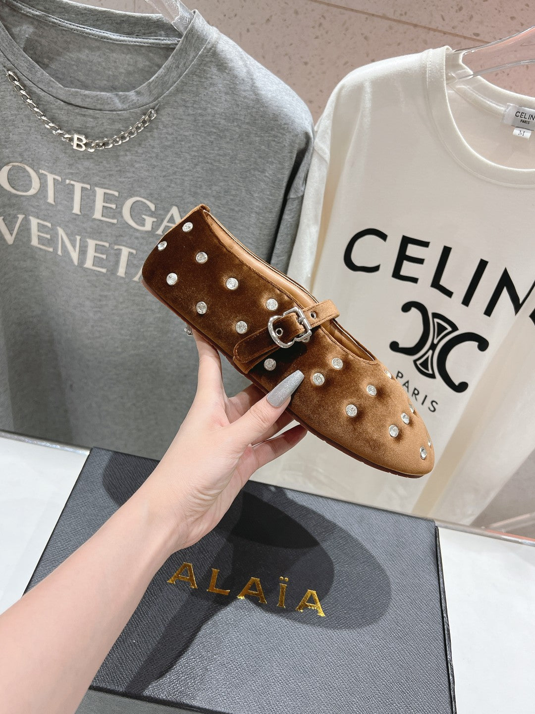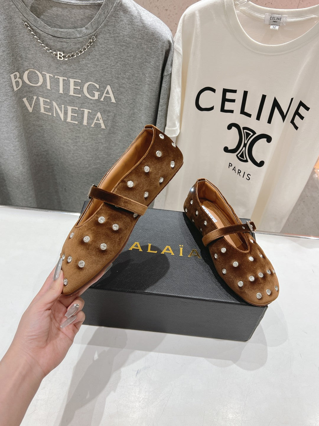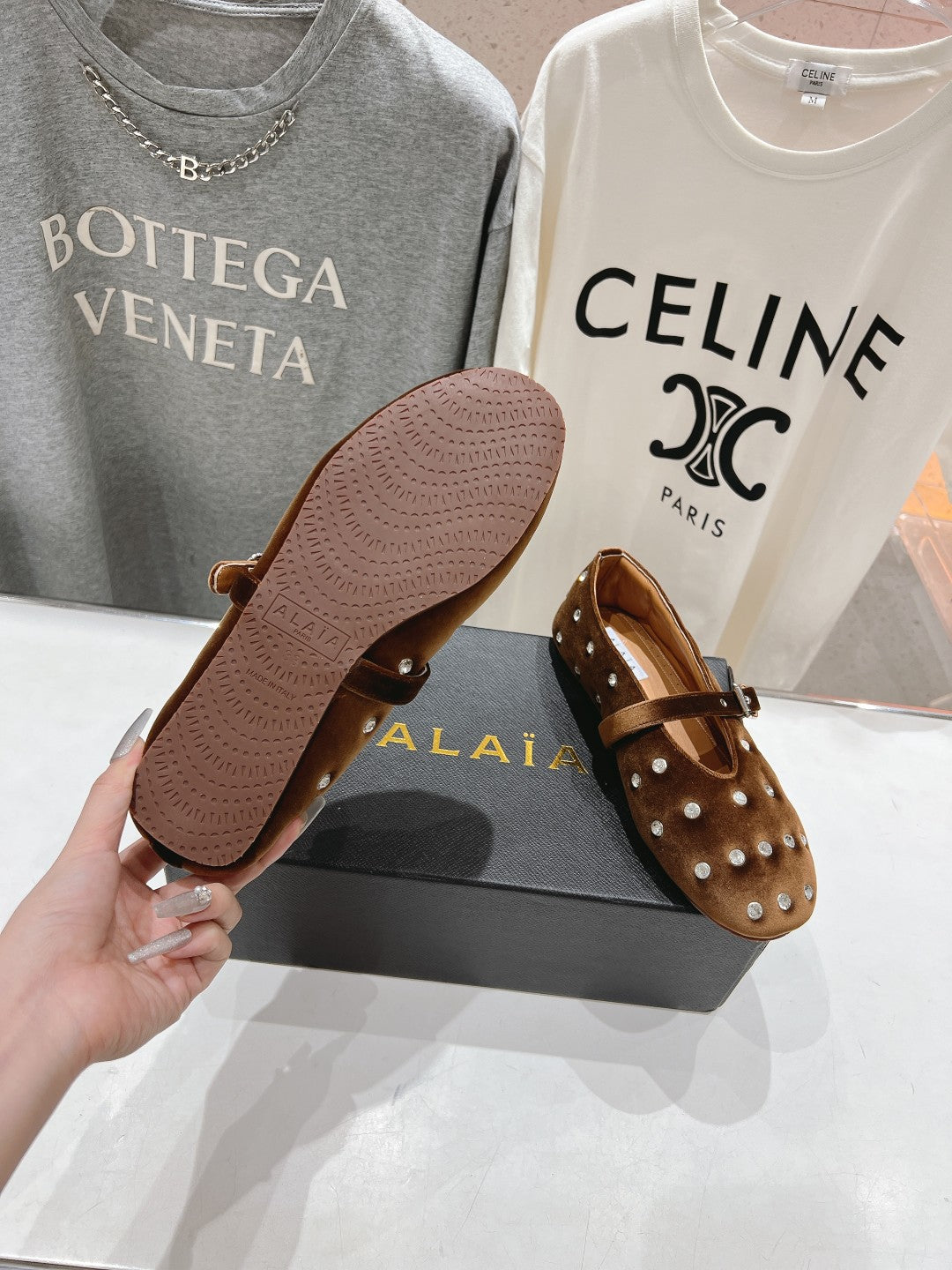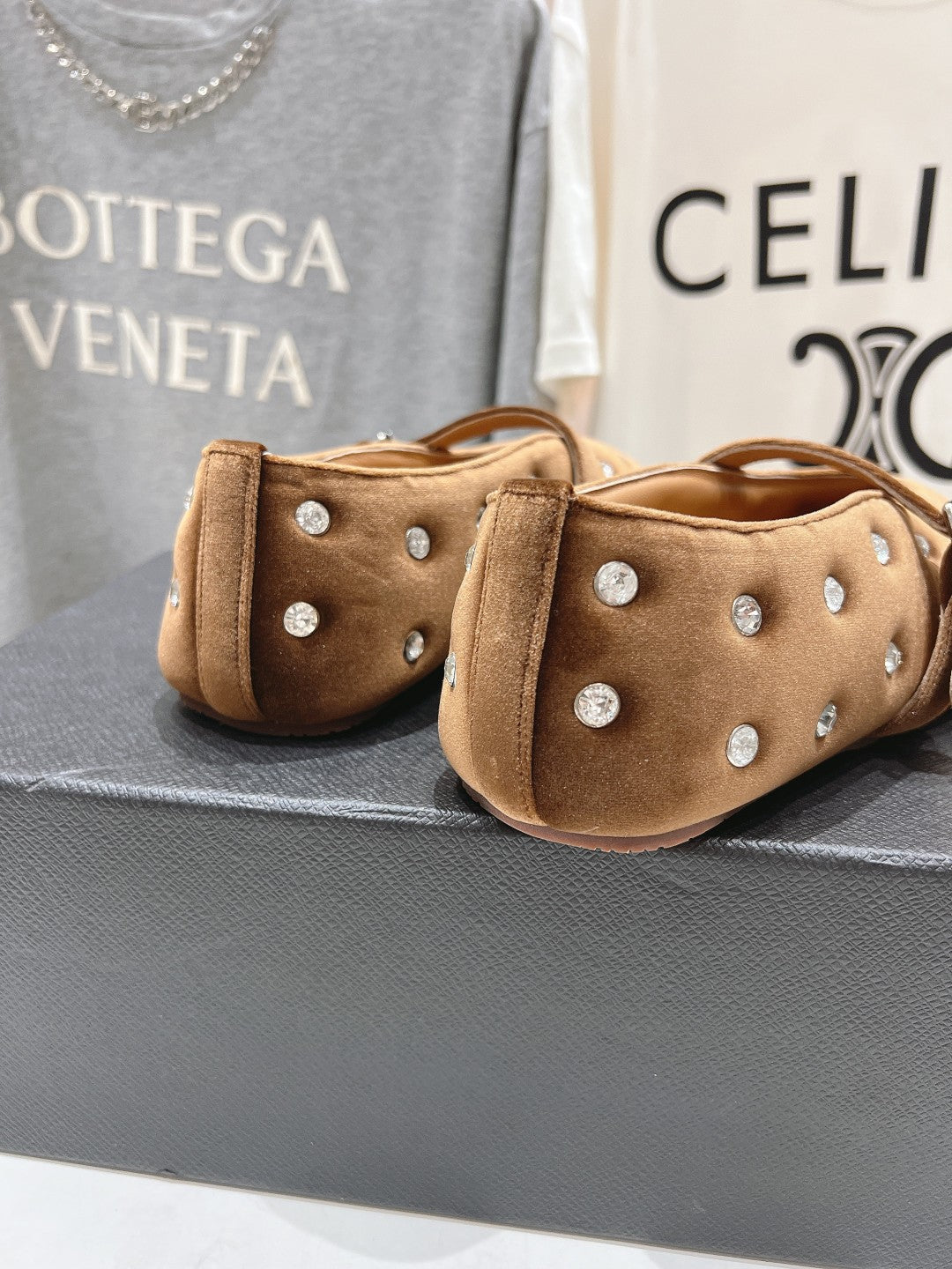 Alaia Strass Suede Ballet Flats In Brown 999324