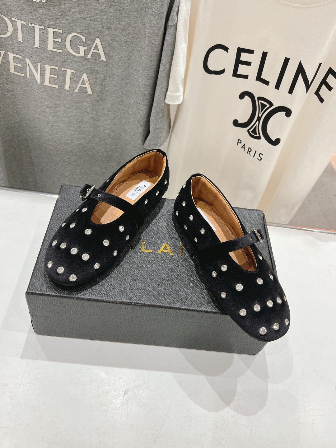 Alaia Ballet Flats In Black Woven Cowhide 102286