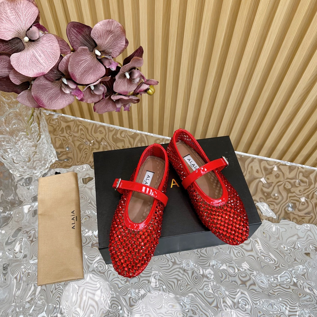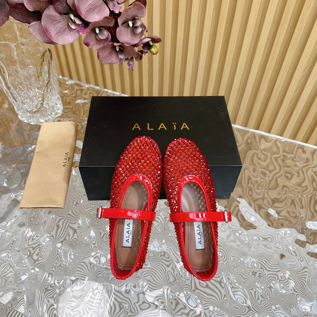 Alaia 25 Women's Ballet Flat Red Sheepskin 303702