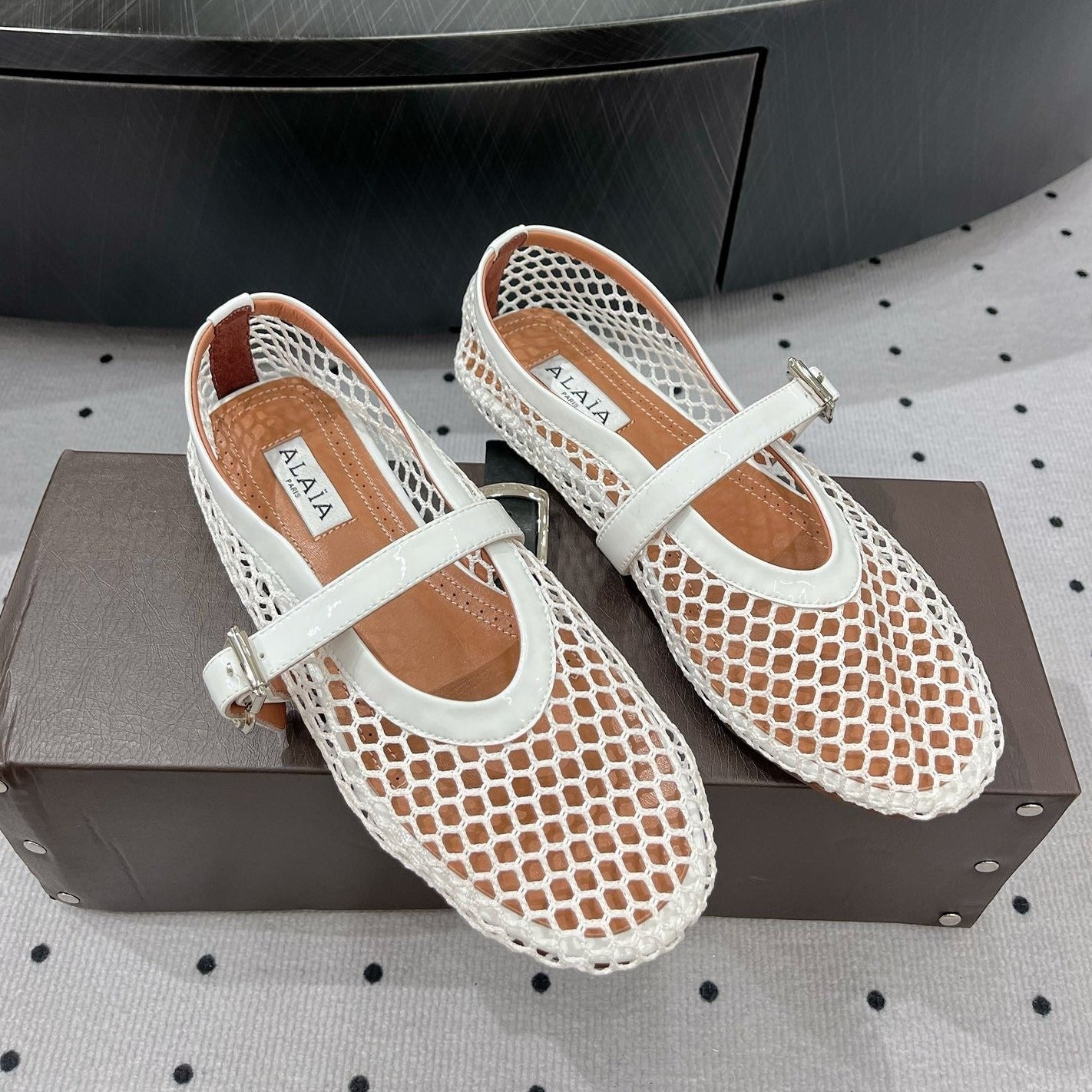 alaia ballet flat fishnet black lambskin double strap