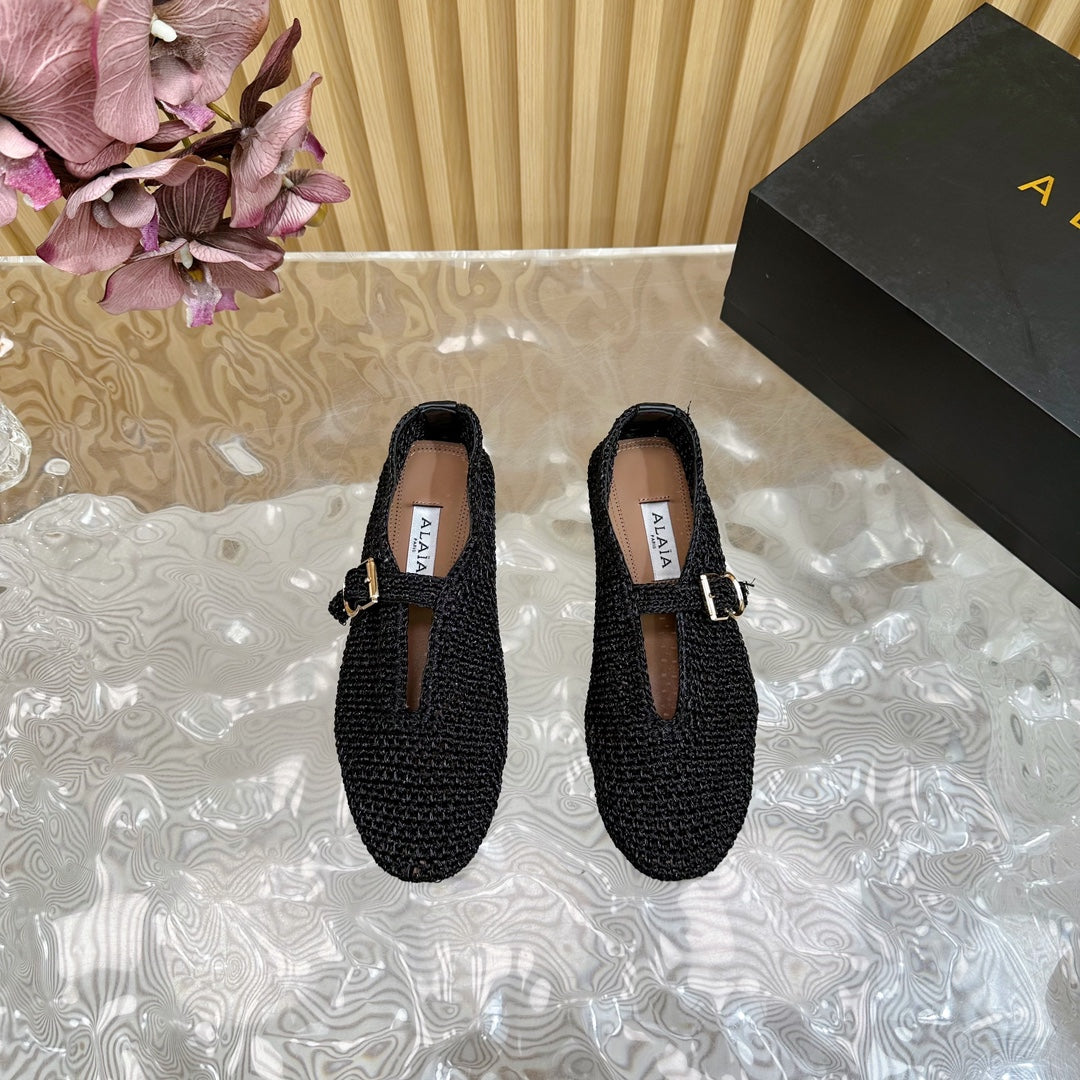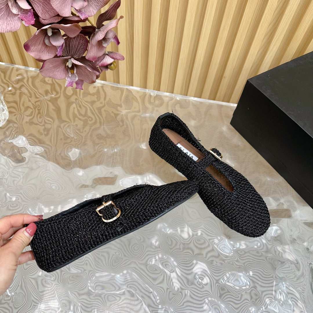 Alaia Braided Hollow Ballet Flats Black Cowhide 300041