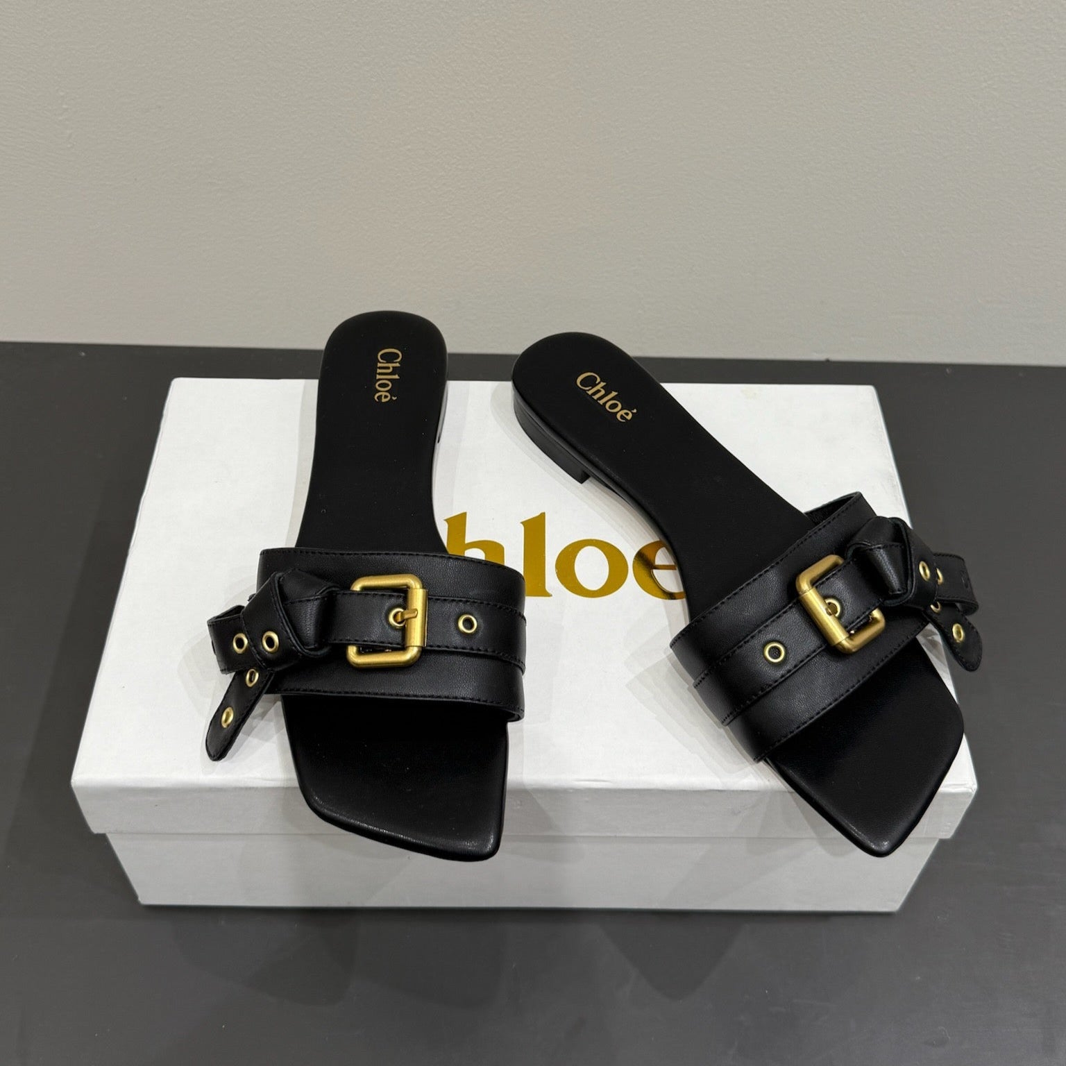 Loewe 25 Bow Metal Buckle Slide Gold Cowhide