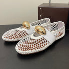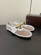 ALAIA BALLET FLATS IN WHITE MESH FISHNET WITH GOLD HARDWARE