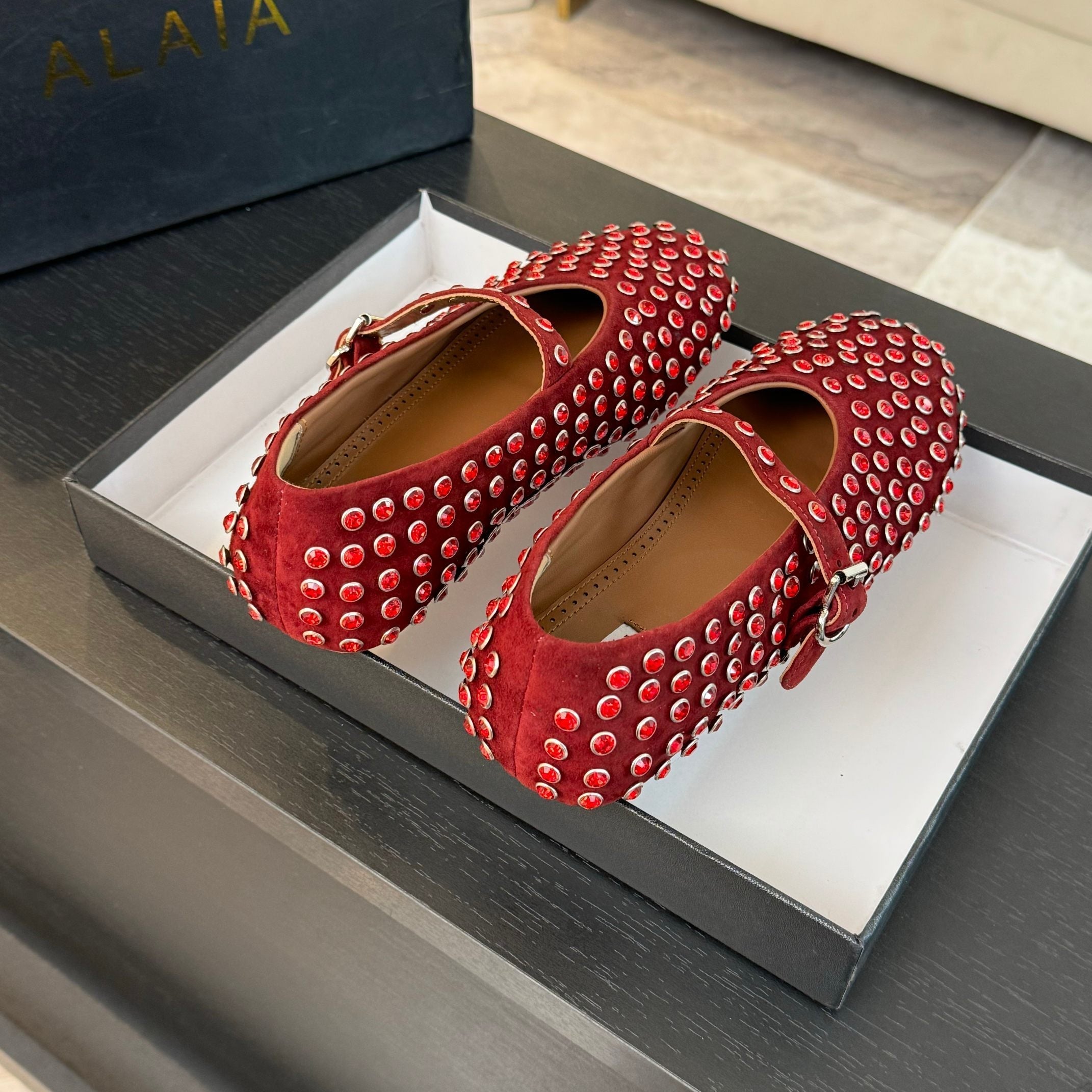Alaia Strass Ballet Flats In Red Suede Stone 935189