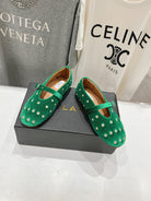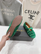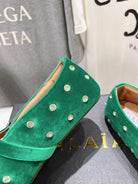 Alaila Ballet Flats In Green Velvet With Rhinestones 972004