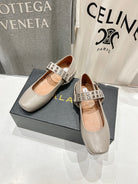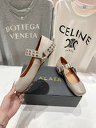 Alaila Biker Ballet Flats In Light Grey Cowhide 911442