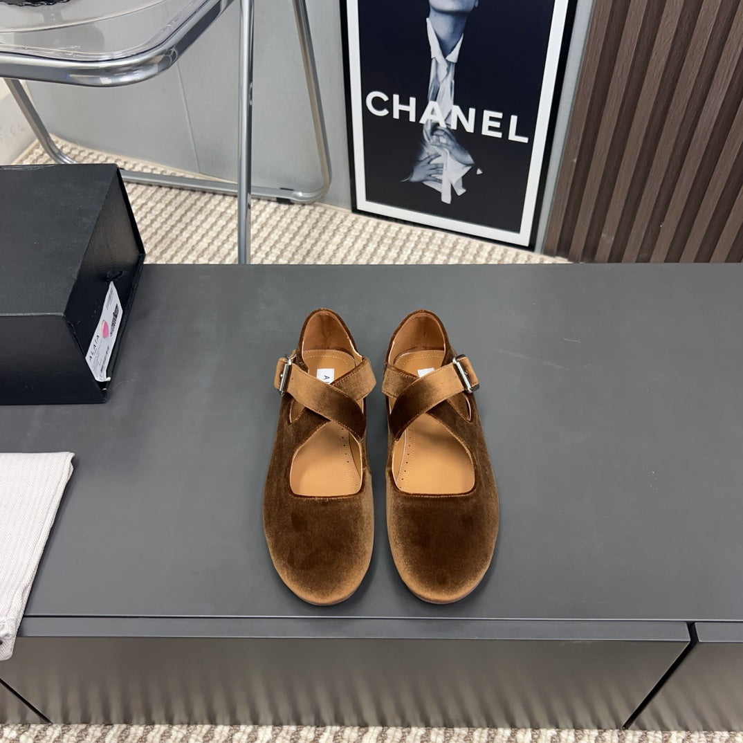 Alaila Criss Cross Ballet Flats In Brown Velvet 996041