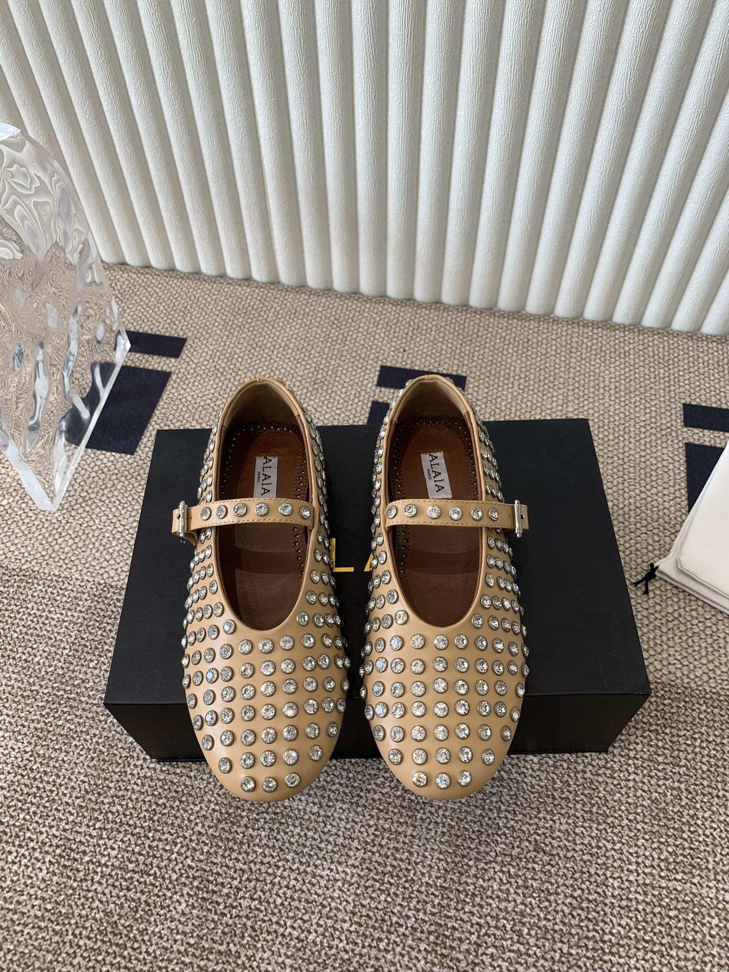 ballet flat in strass beige lambskin
