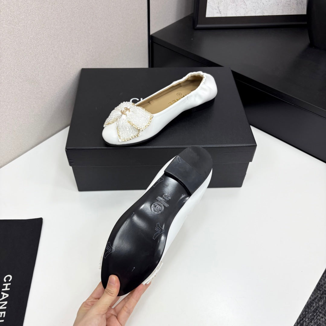 CC 25 Diamond Ballet Flats White Sheepskin 331788
