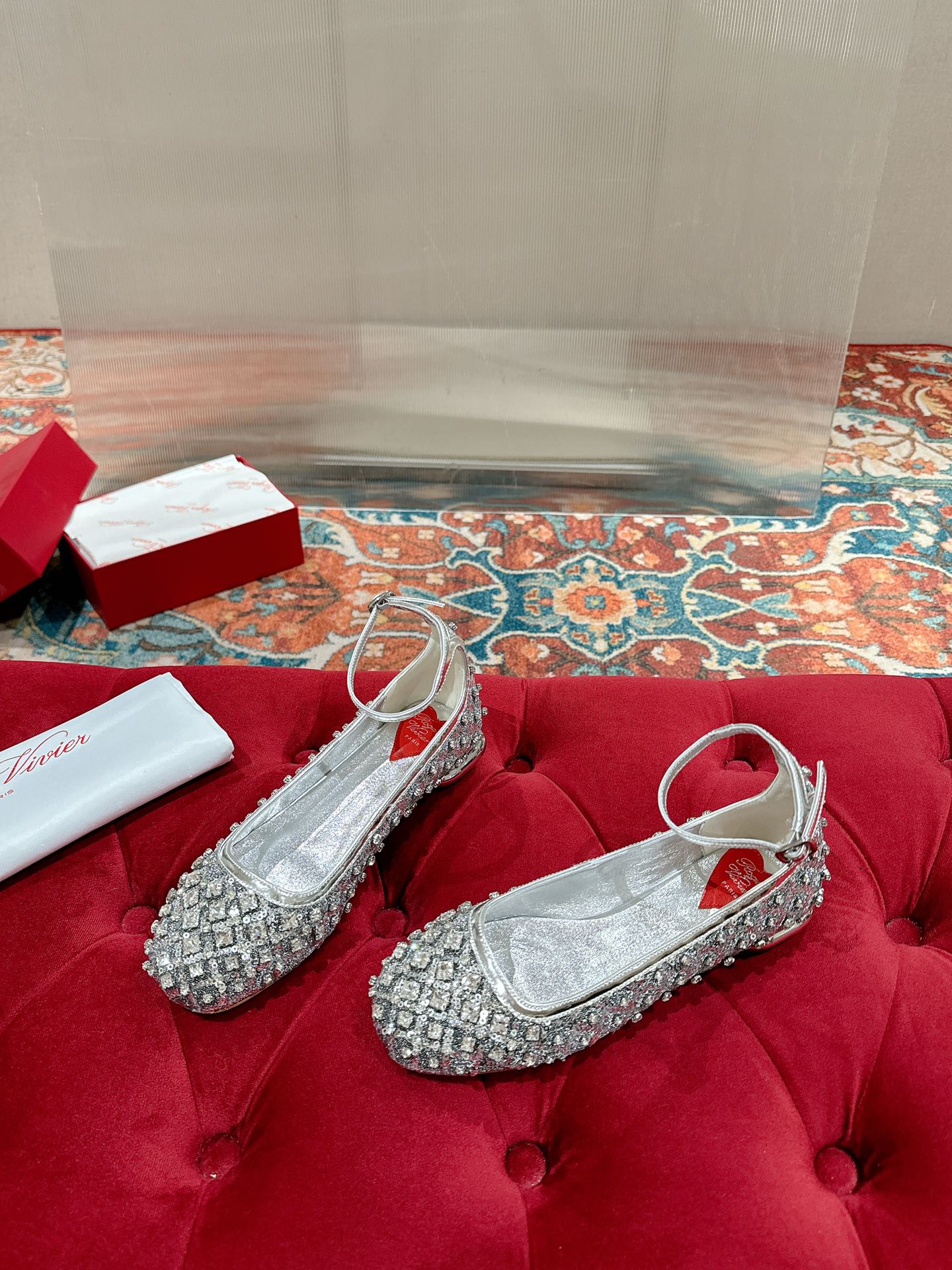 Viv 25 Mary Jane Flats Silver Fabric Rhinestone 247124