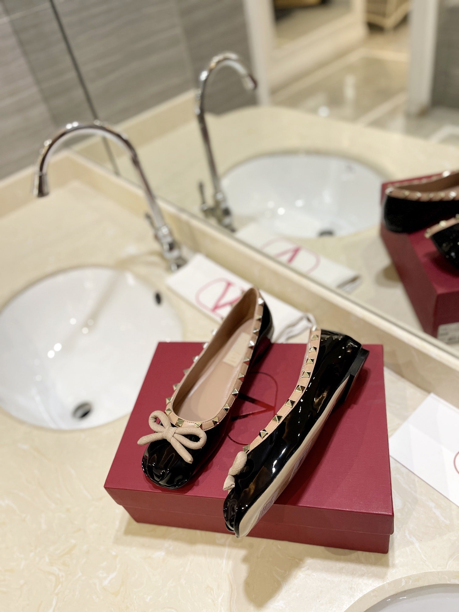 ROCKSTUD PATENT BLACK LEATHER BALLERINA