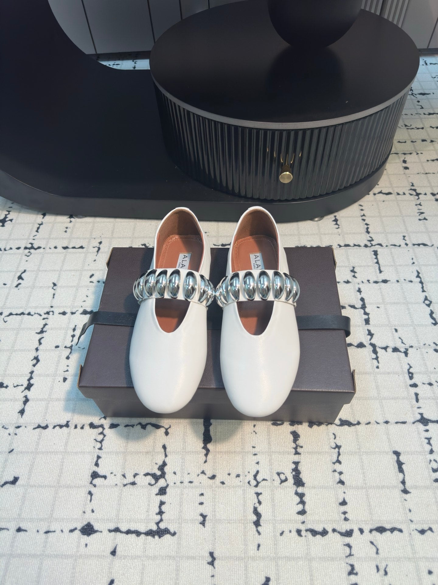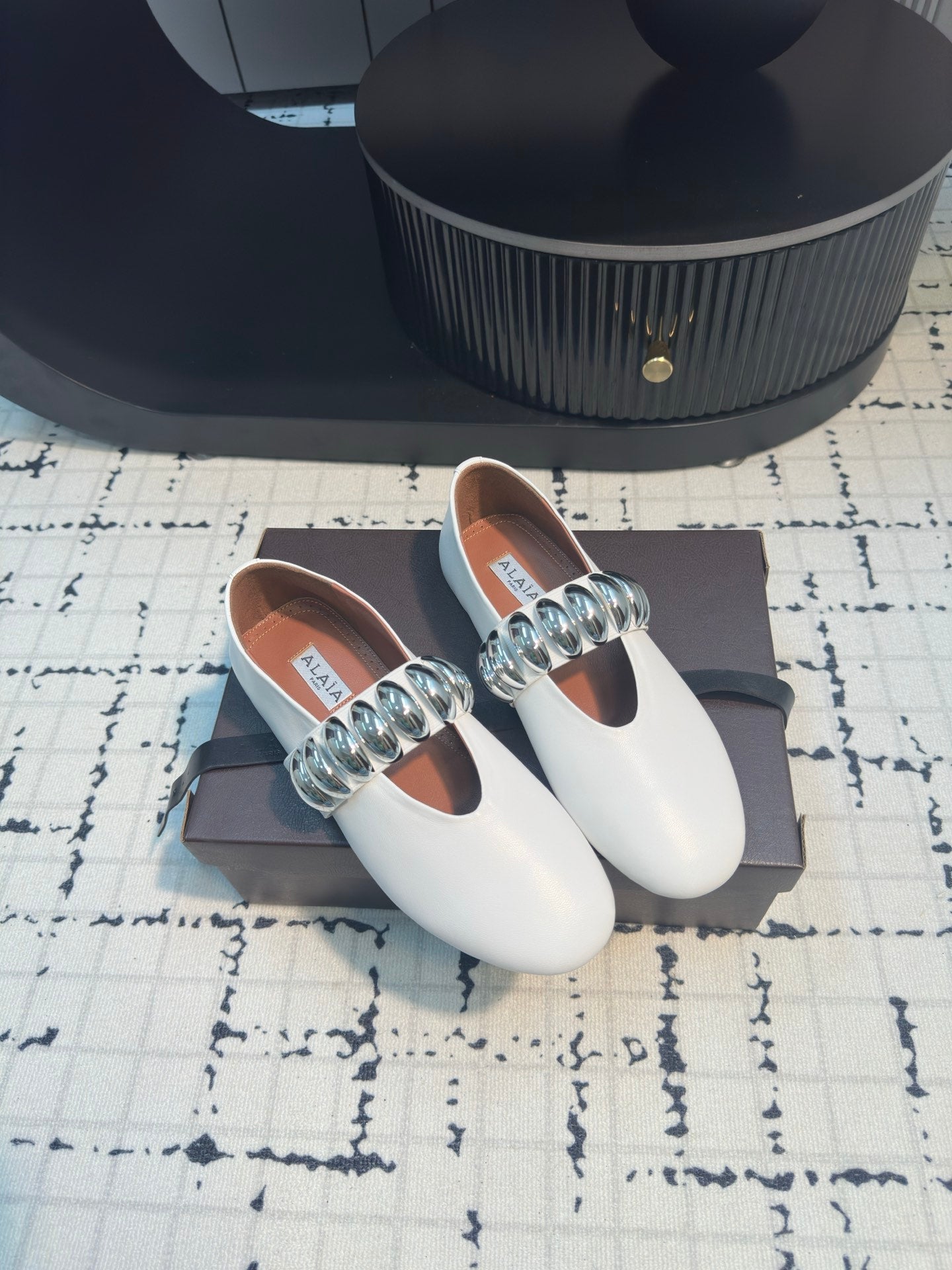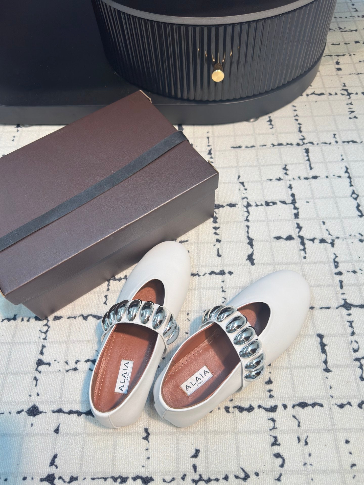 Alaila Ballet Flats In White Lambskin Beaded 897248