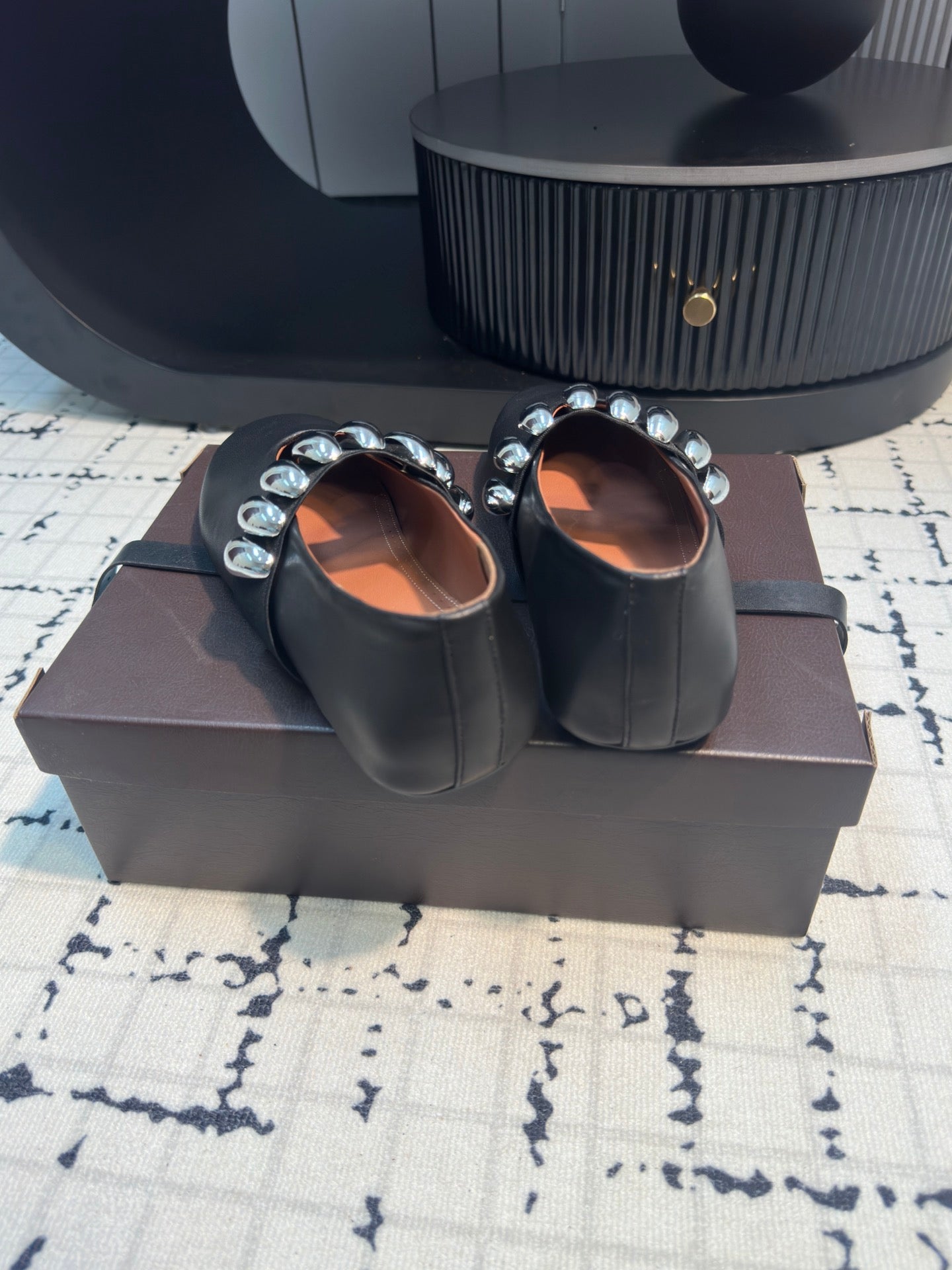 Alaila Ballet Flats In Black Lambskin Beaded 897246
