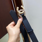 CC BELT 3.0CM LEATHER BLACK BUCKLE GOLD PEARL WHITE DIAMOND