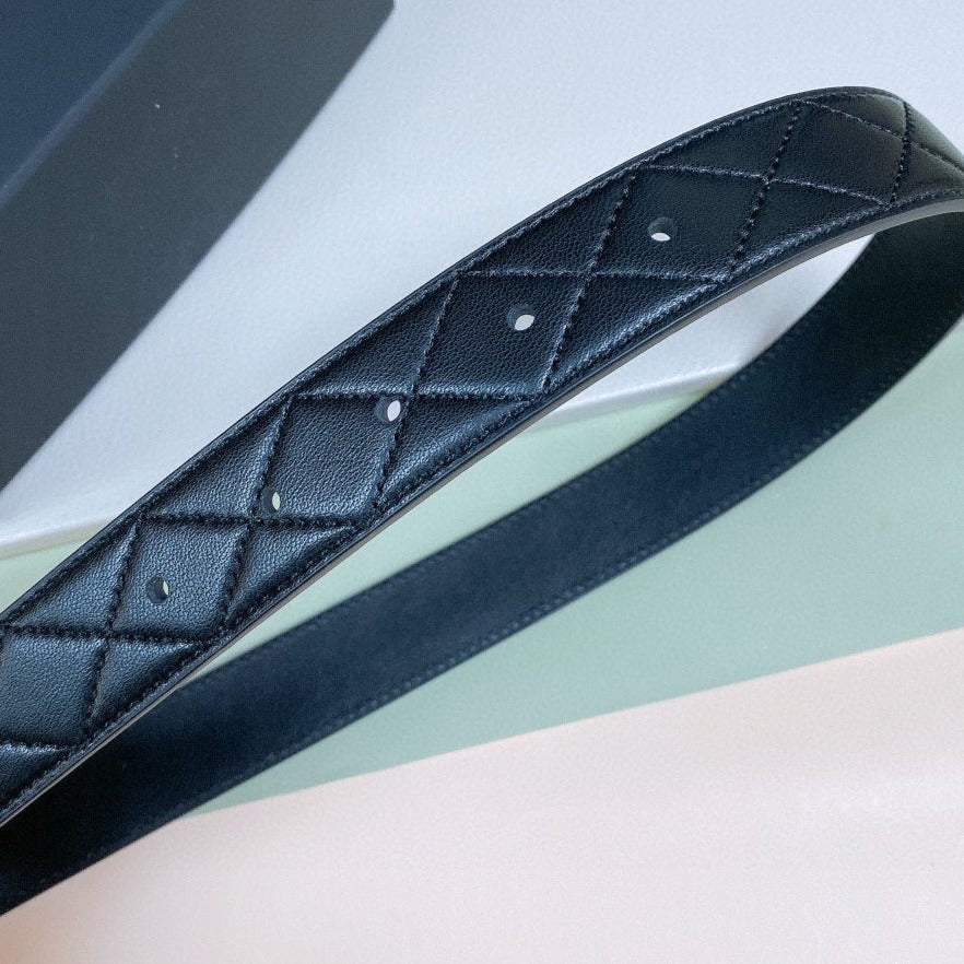 CC WOMEN'S BELT 3.0CM BUCKLE PINK GOLD CARO LEATHER BLACK