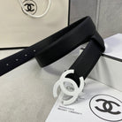 CC WOMEN'S BELT 3.0CM LEATHER EPSOM BLACK BUCKLE SILVER